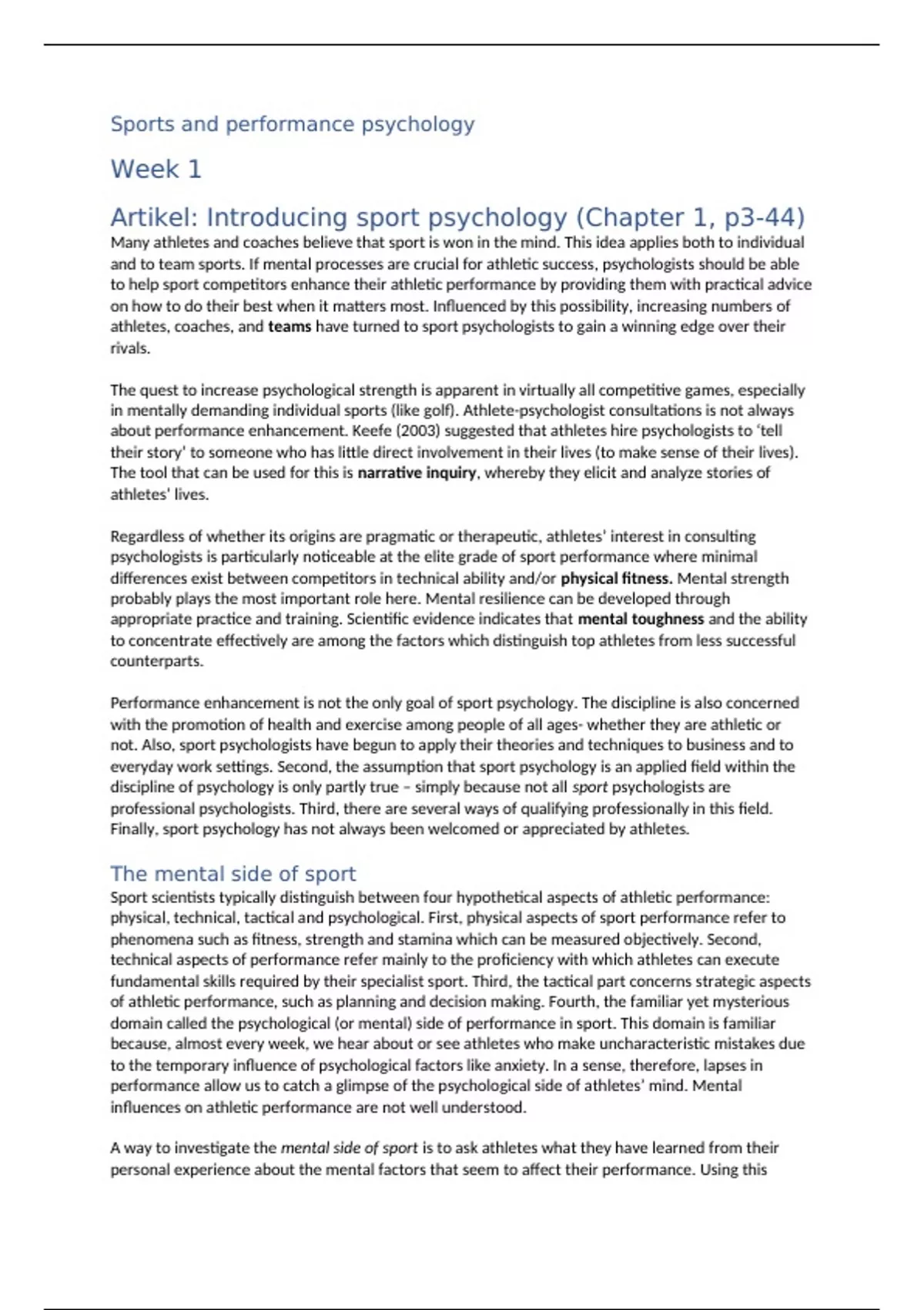 Artikel: Introducing sport psychology (Chapter 1, p3-44)