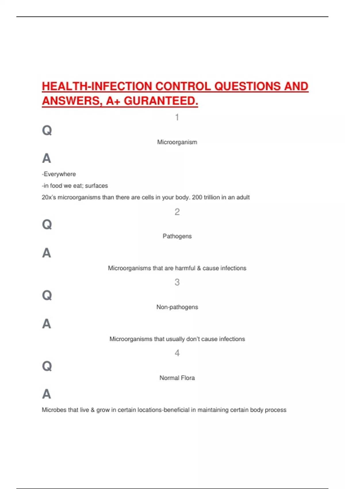 HEALTH-INFECTION CONTROL QUESTIONS AND