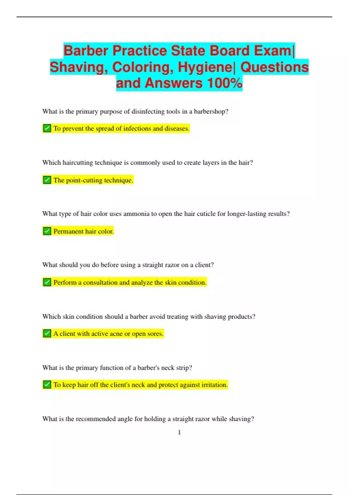 Shaving, Coloring, Hygiene| Questions