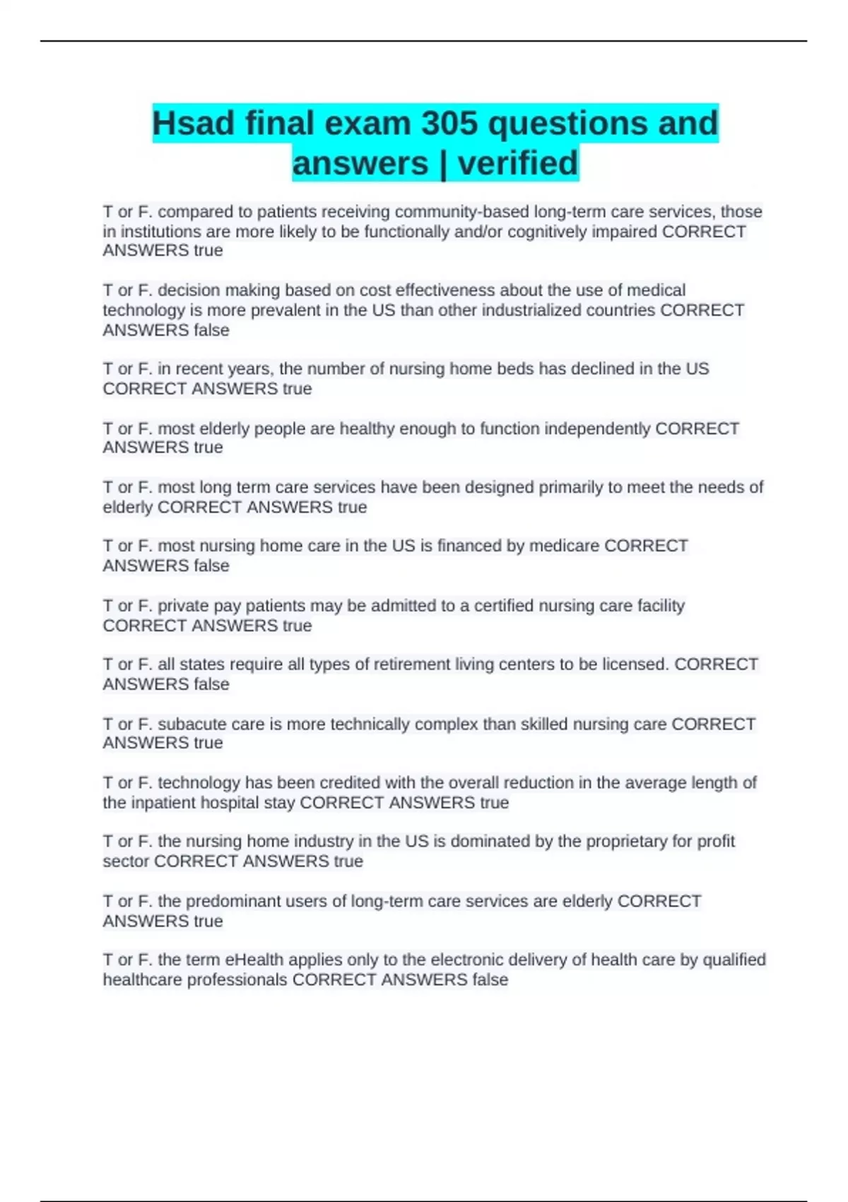 Hsad final exam 305 questions and answers | verified