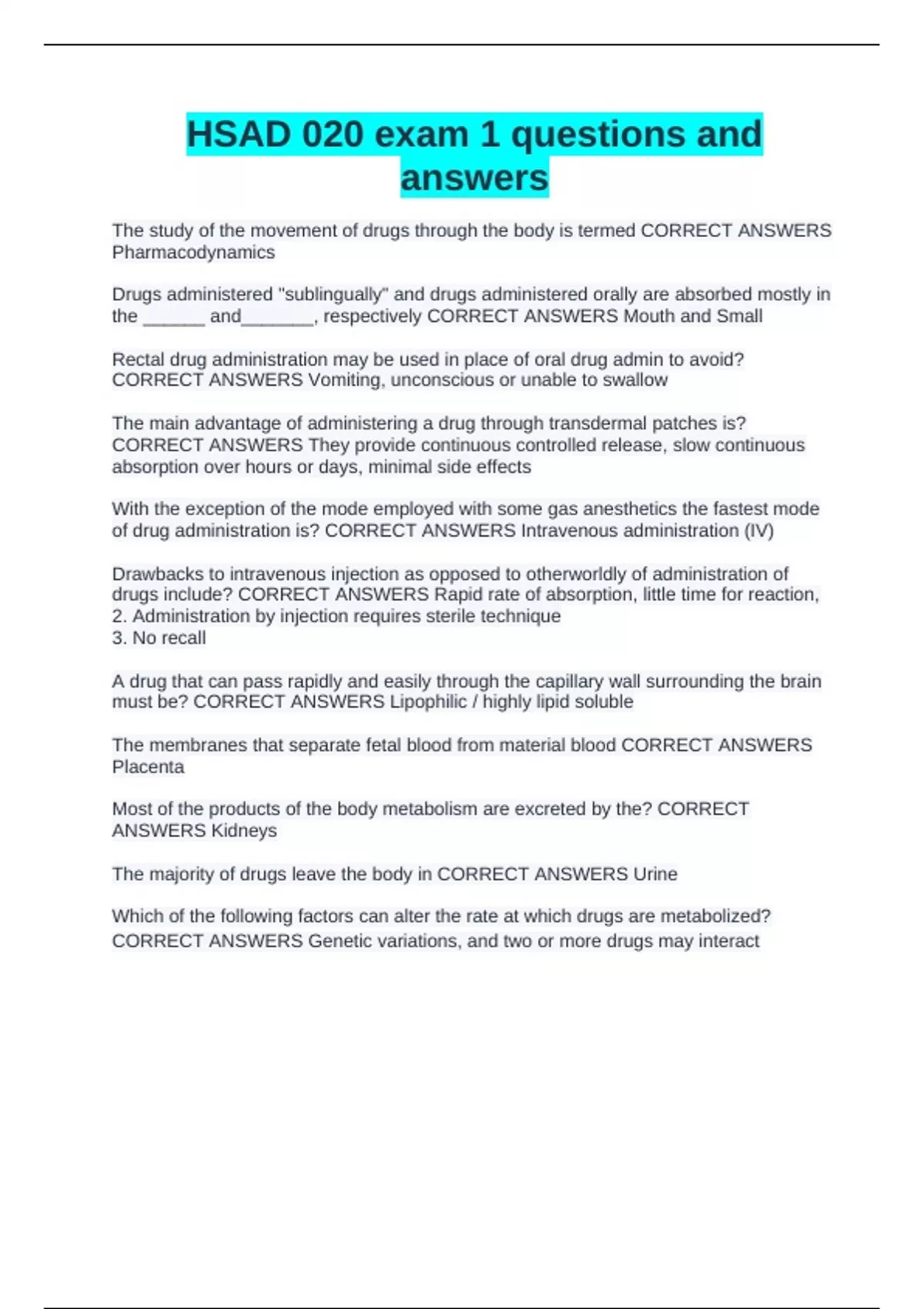 drugs include? CORRECT ANSWERS Rapid rate of absorption, little time for reaction,