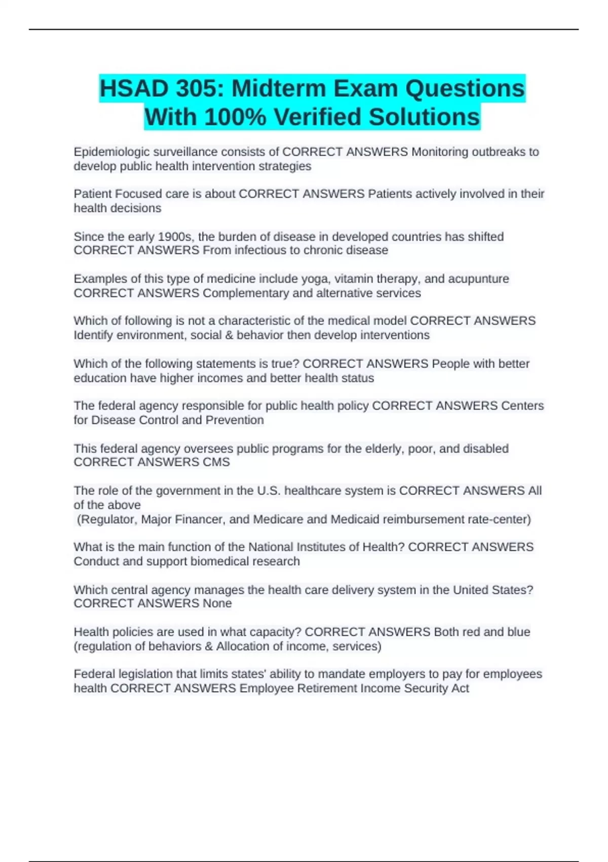 health CORRECT ANSWERS Employee Retirement Income Security Act