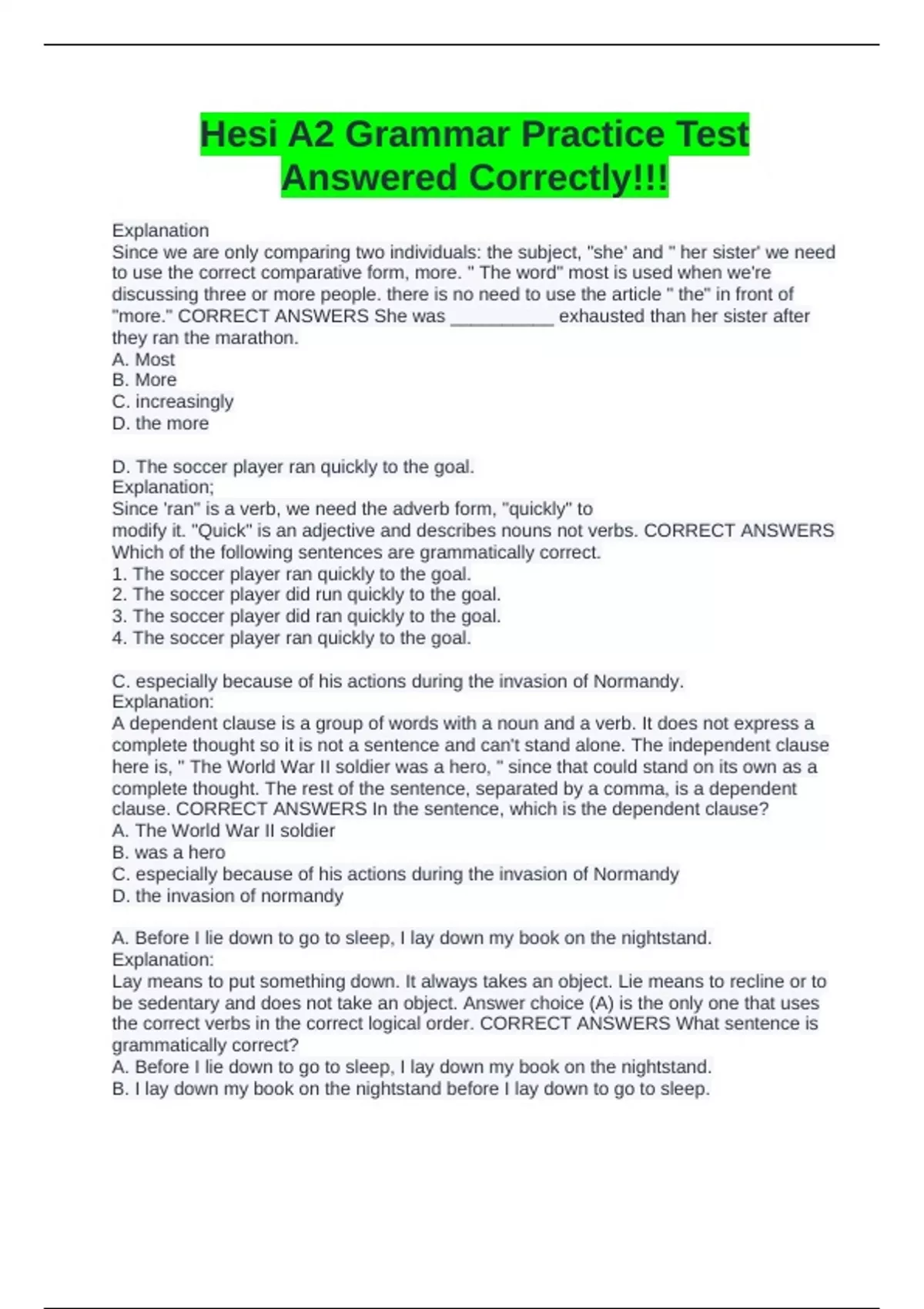 Hesi A2 Grammar Practice Test Answered Correctly!!!