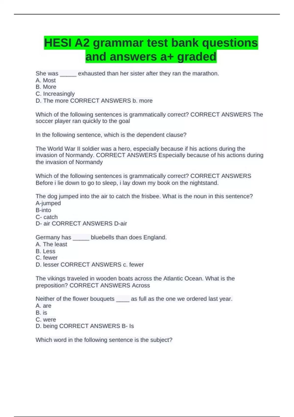 Which of the following sentences is grammatically correct? CORRECT ANSWERS My