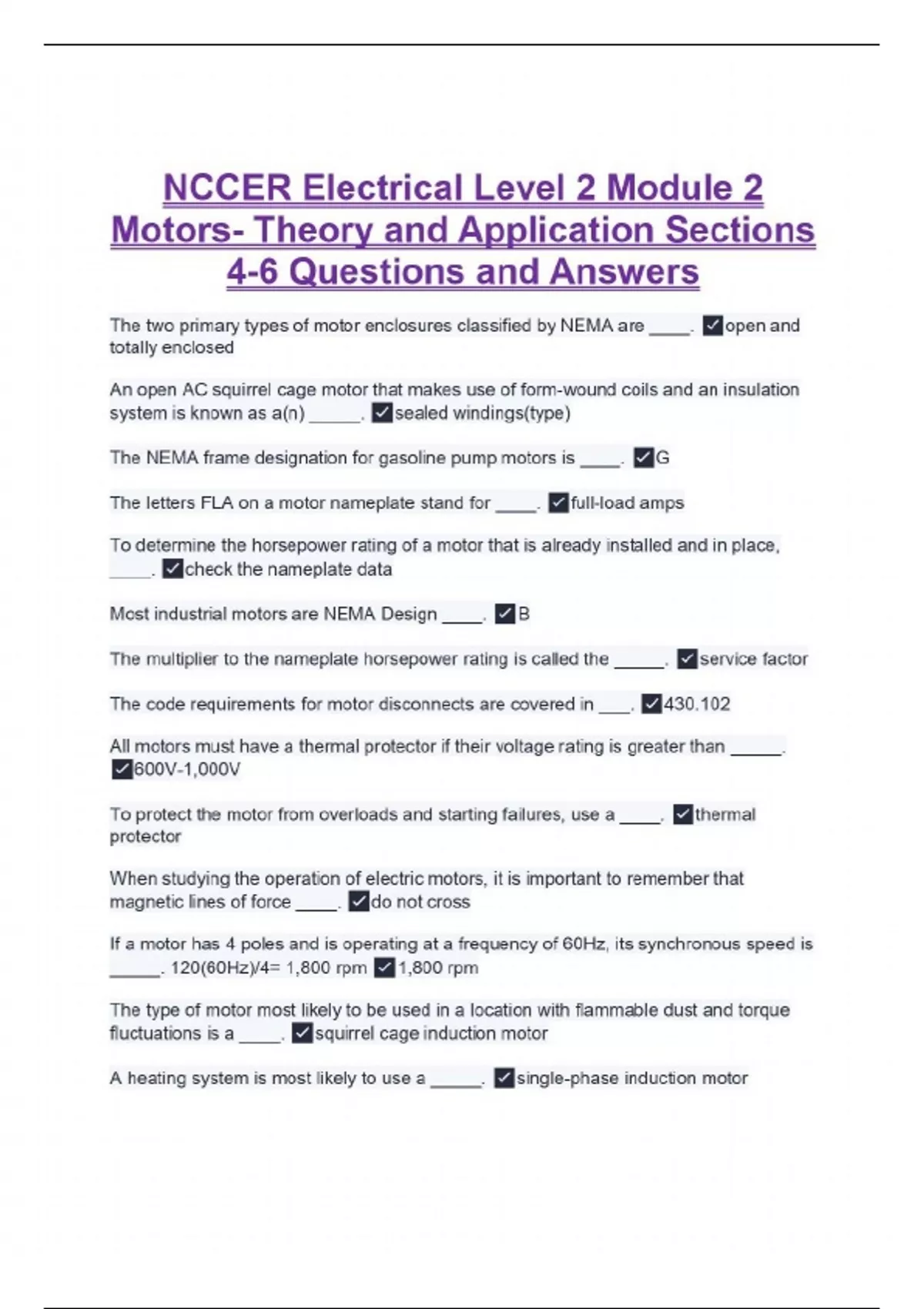 NCCER Electrical Level 2 Module 2 Motors- Theory and Application Sections 4-6 Questions and Answers