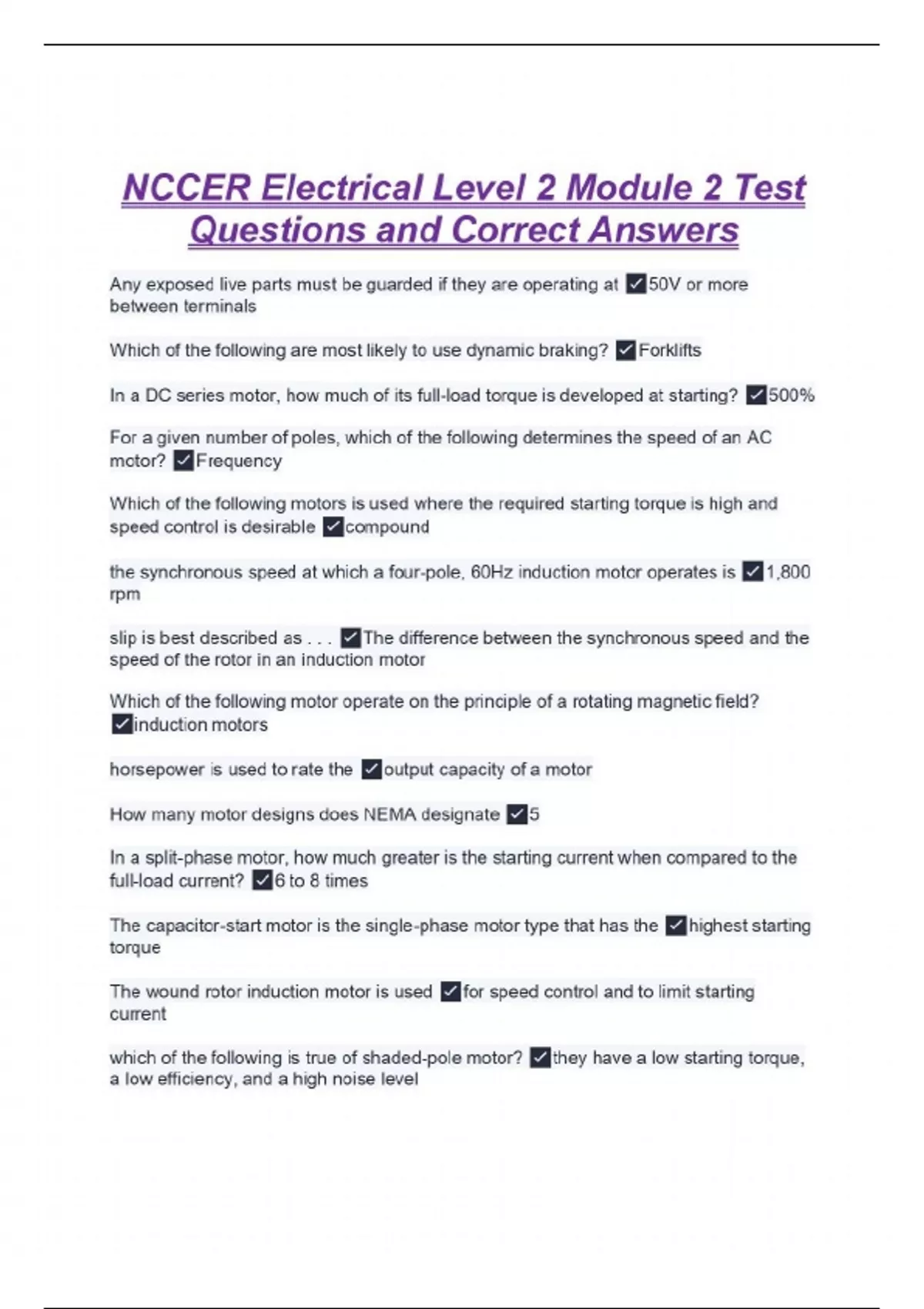 NCCER Electrical Level 2 Module 2 Test Questions and Correct Answers
