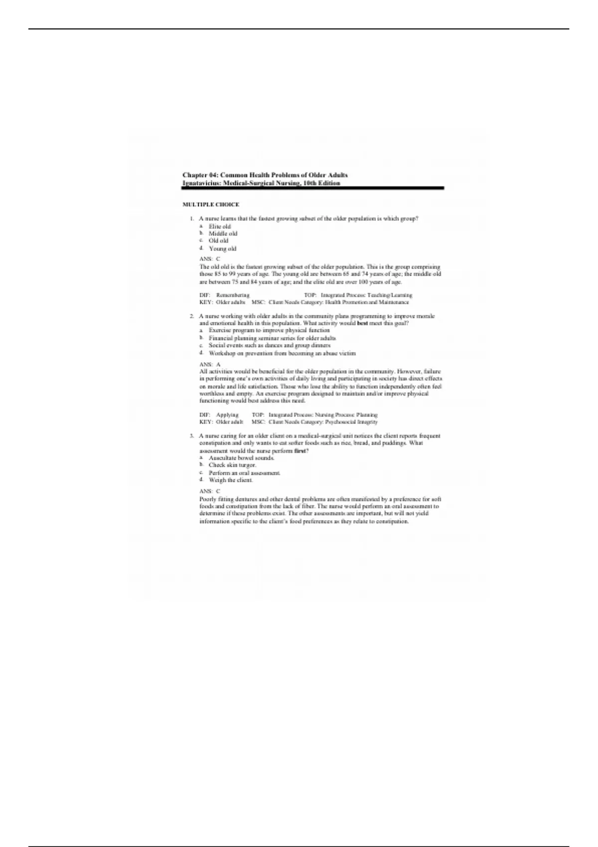 KEY: Older adult MSC: Client Needs Category: Psychosocial Integrity