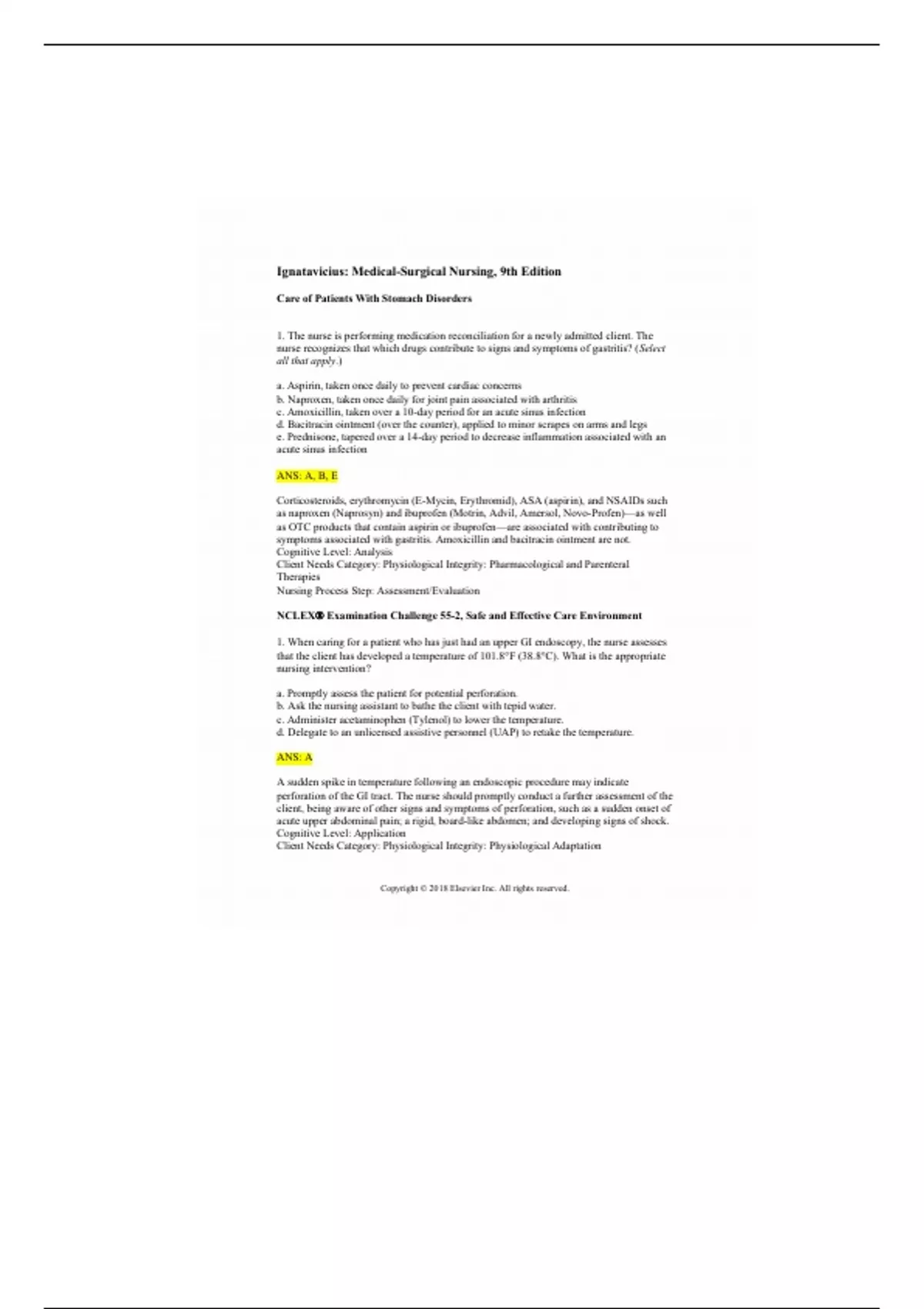 Practice Questions and Answers Care of Patients With Stomach Disorders. *Essential Study Material!!
