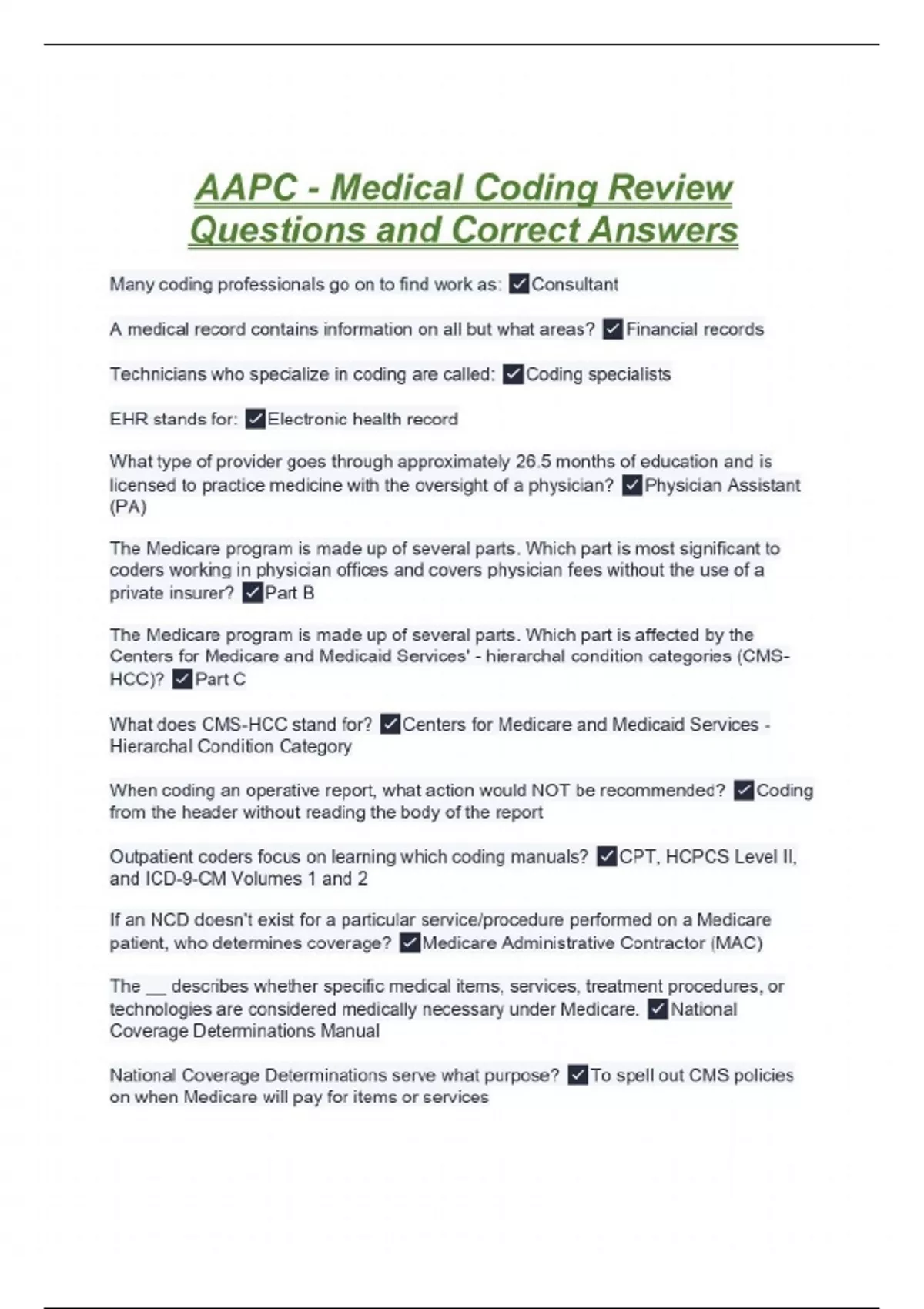 AAPC - Medical Coding Review Questions and Correct Answers