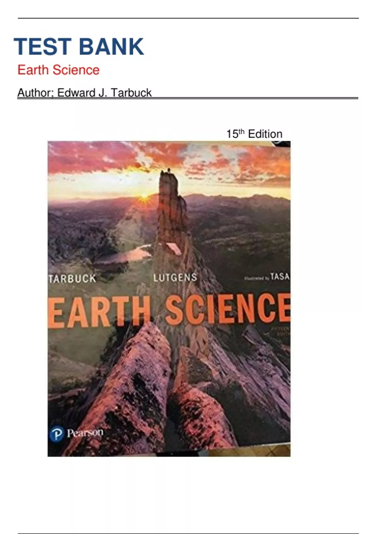 Test Bank for Earth Science, 15th edition by Edward J. Tarbuck|9780134673943| Chapters 1-14| LATEST