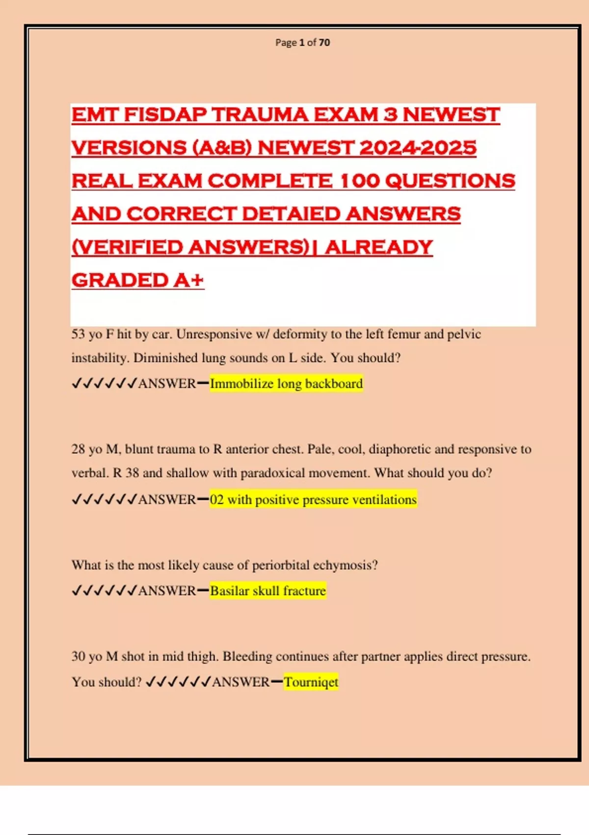EMT FISDAP TRAUMA EXAM 3 NEWEST