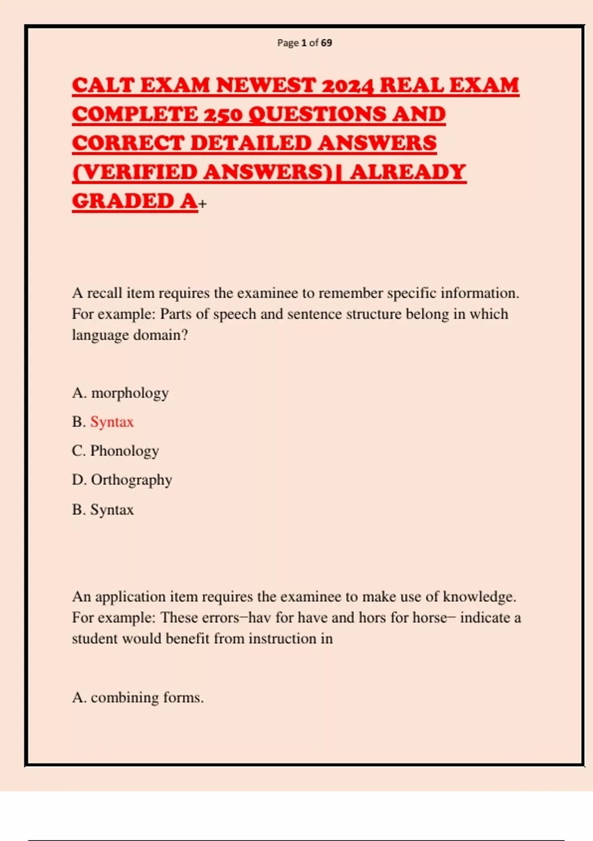 CALT EXAM NEWEST 2024 REAL EXAM COMPLETE 250 QUESTIONS AND CORRECT DETAILED ANSWERS (VERIFIED ANSWERS)| ALREADY GRADED A+