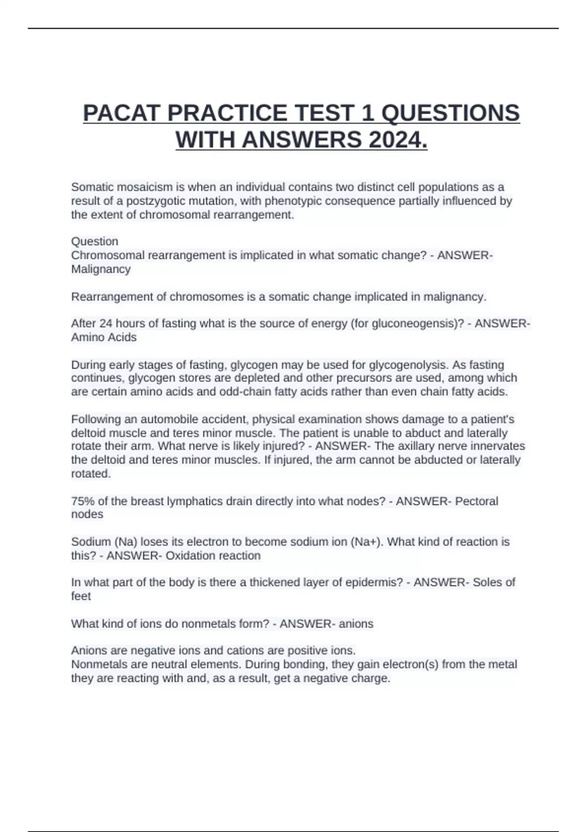 PACAT PRACTICE TEST 1 QUESTIONS WITH ANSWERS 2024..docx
