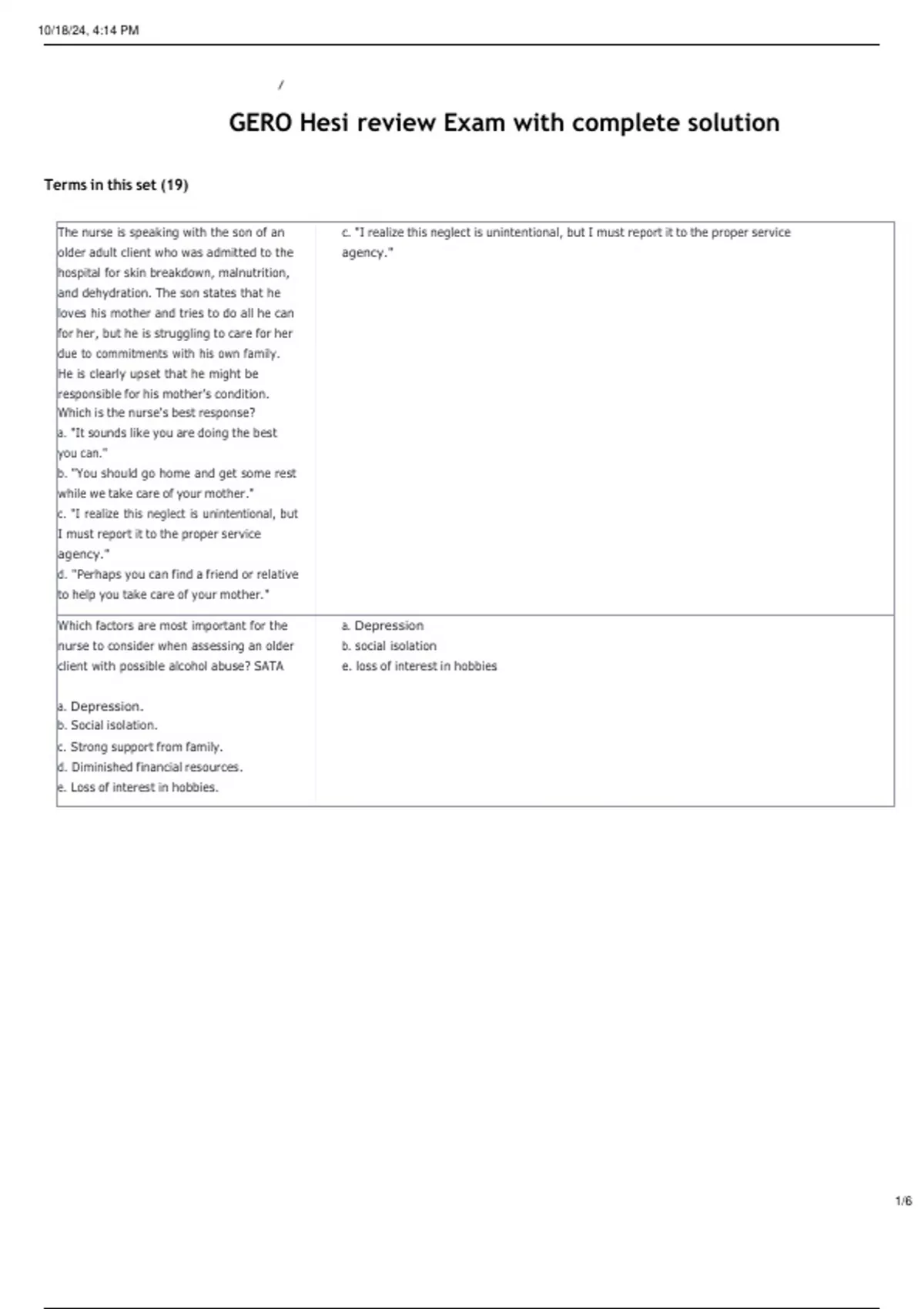 GERO Hesi review Exam with complete solution