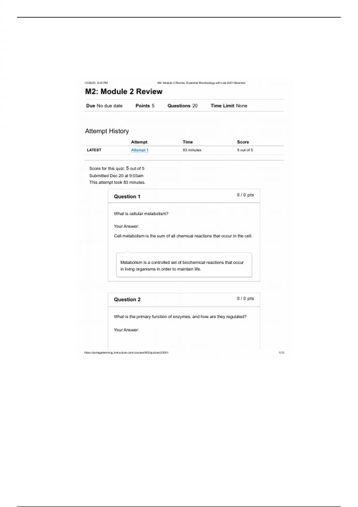 , 12/26/23, 8:35 PM M2: Module 2 Review: Essential Microbiology with Lab-2021-Bowman