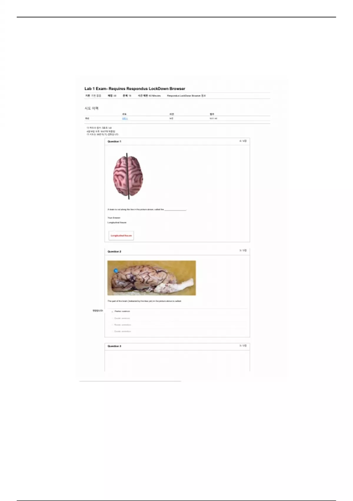 기한 기한 없음 배점 40 문제 15 시간 제한 60 Minutes Respondus LockDown Browser 필요