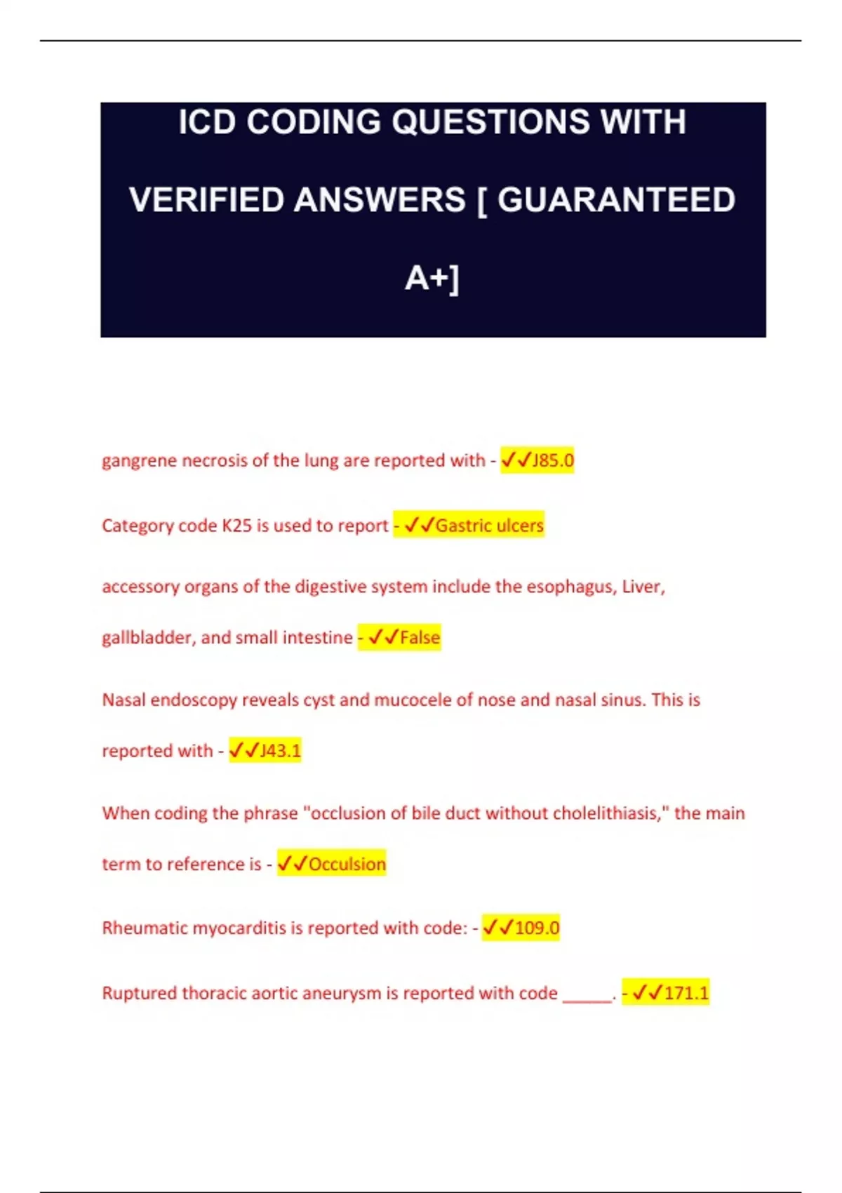 gangrene necrosis of the lung are reported with - ✔✔J85.0