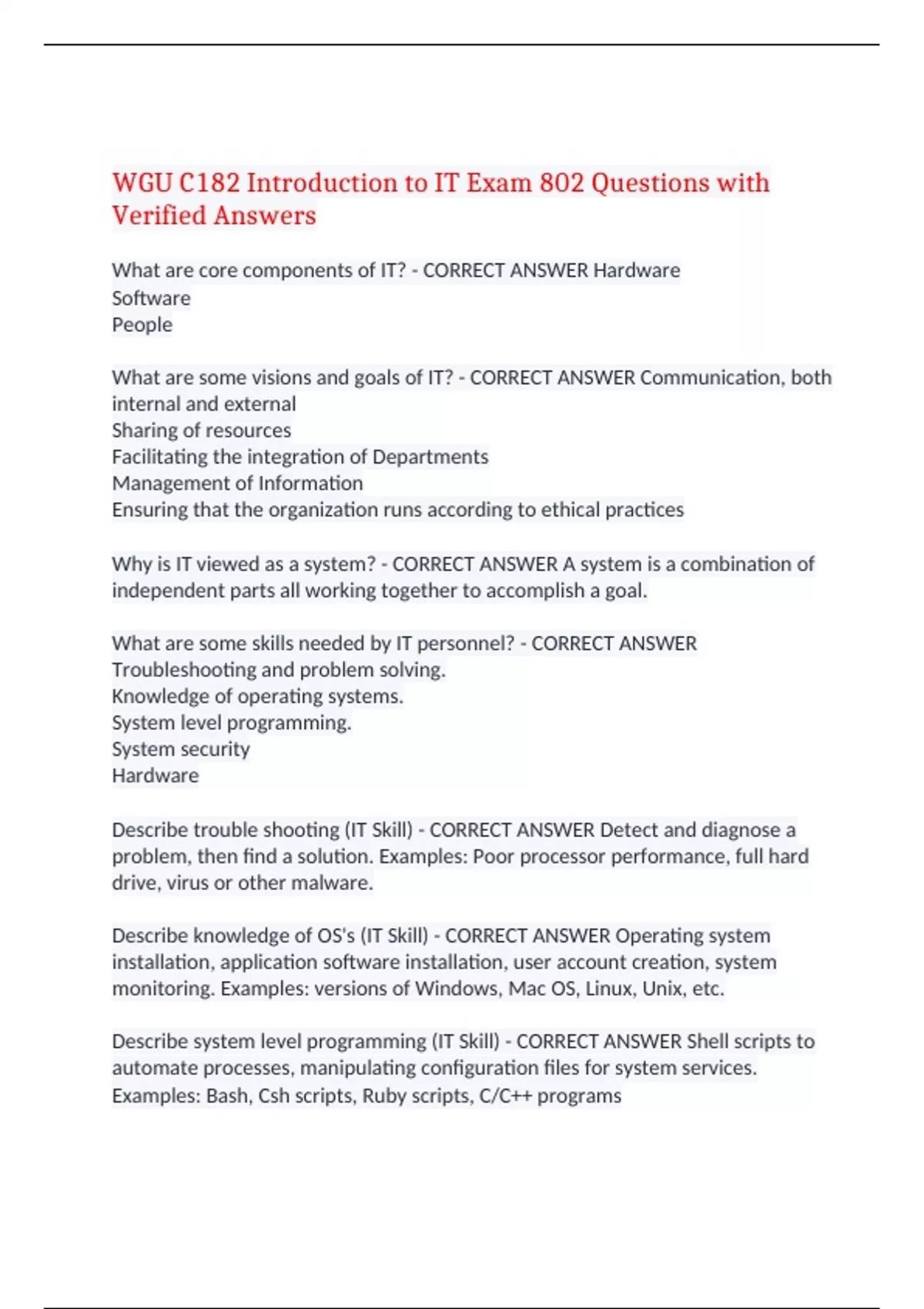 WGU C182 Introduction to IT Exam 802 Questions with Verified Answers,100% CORRECT
