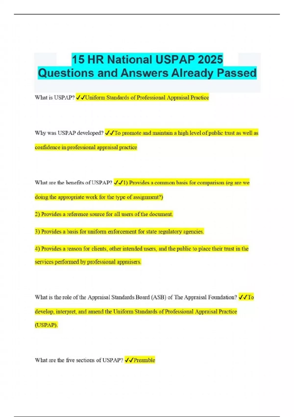 15 HR National USPAP 2025 Questions and Answers Already Passed