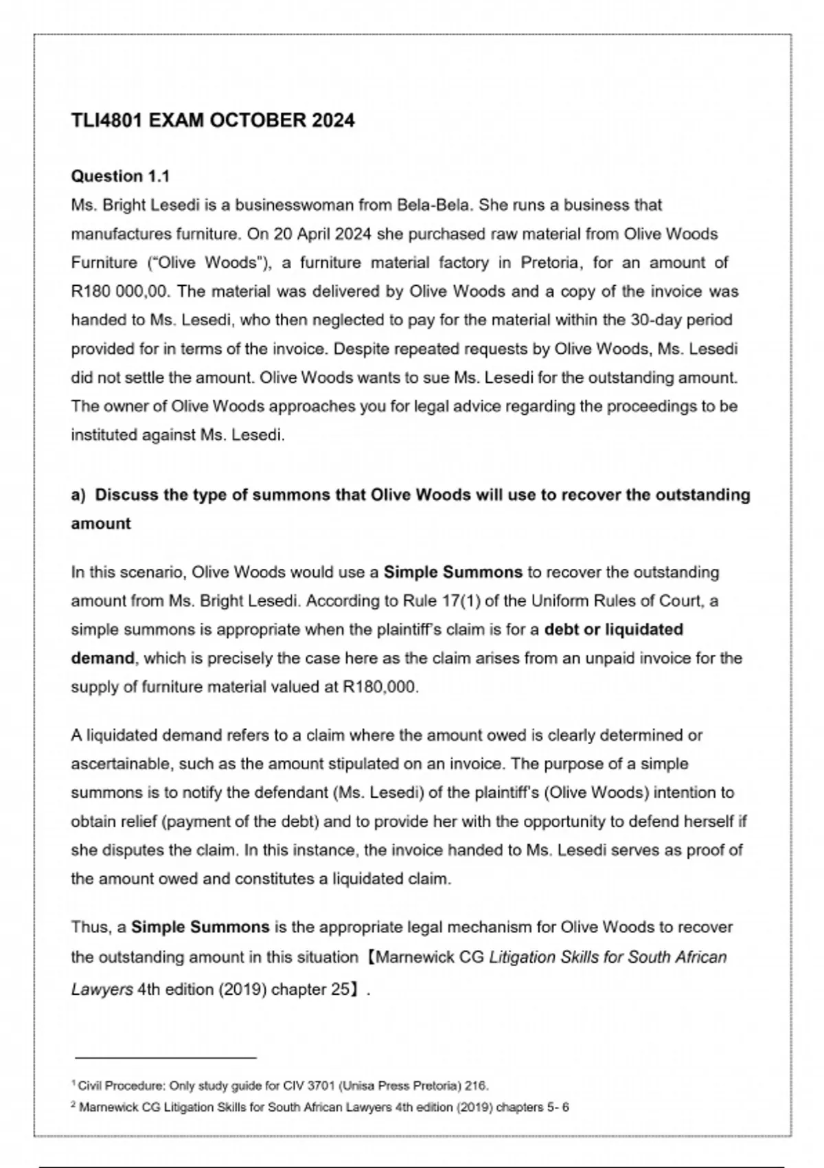 - Techniques in Trial and Litigation - TLI4801 (TLI4801)