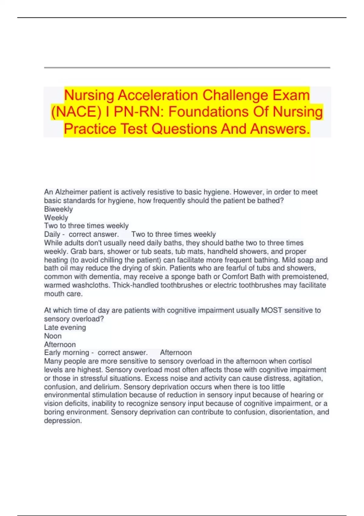 levels are highest. Sensory overload most often affects those with cognitive impairment