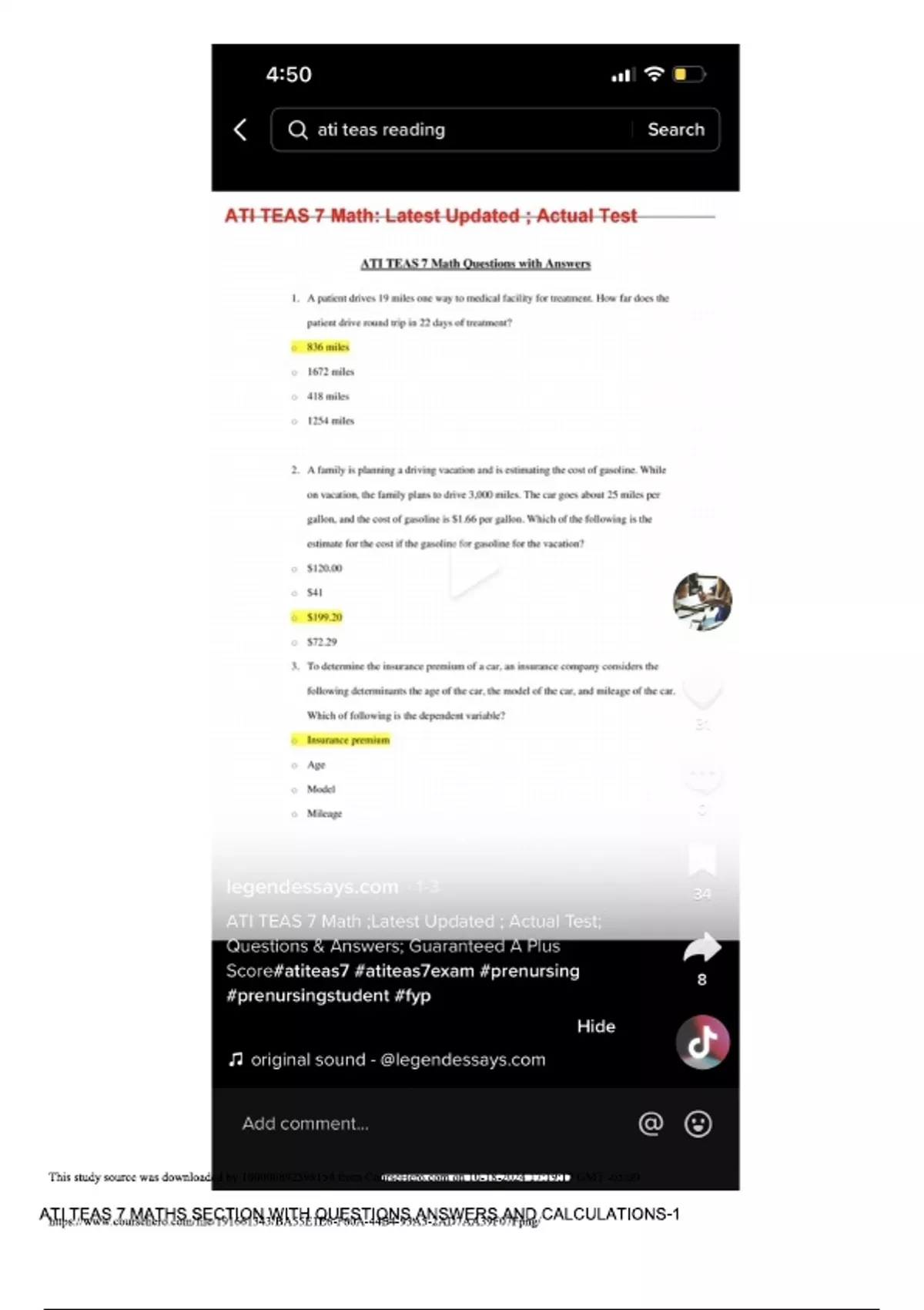 ATI TEAS 7 MATHS SECTION WITH QUESTIONS,ANSWERS AND CALCULATIONS-1