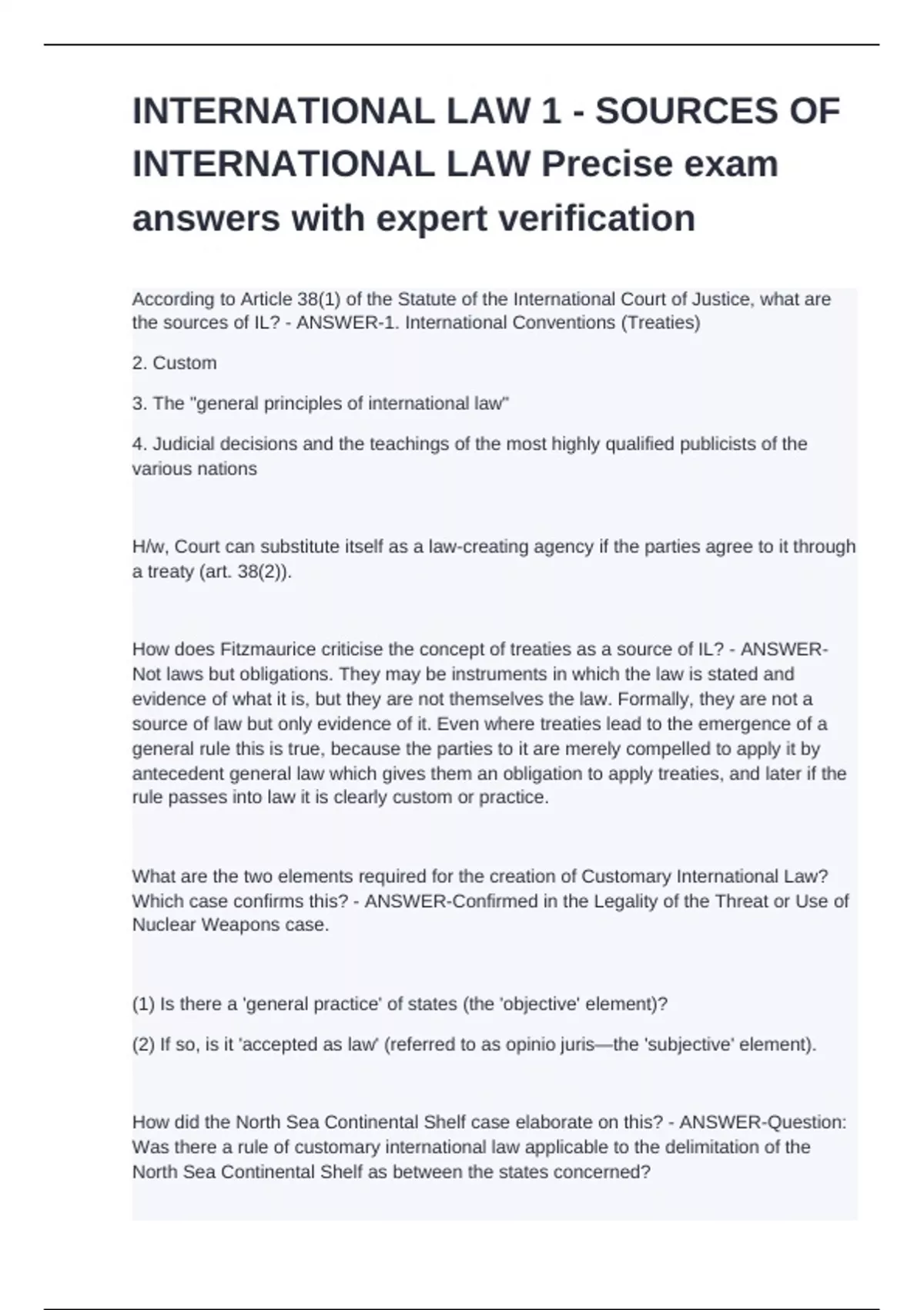 INTERNATIONAL LAW 1 - SOURCES OF INTERNATIONAL LAW Precise exam answers with expert verification