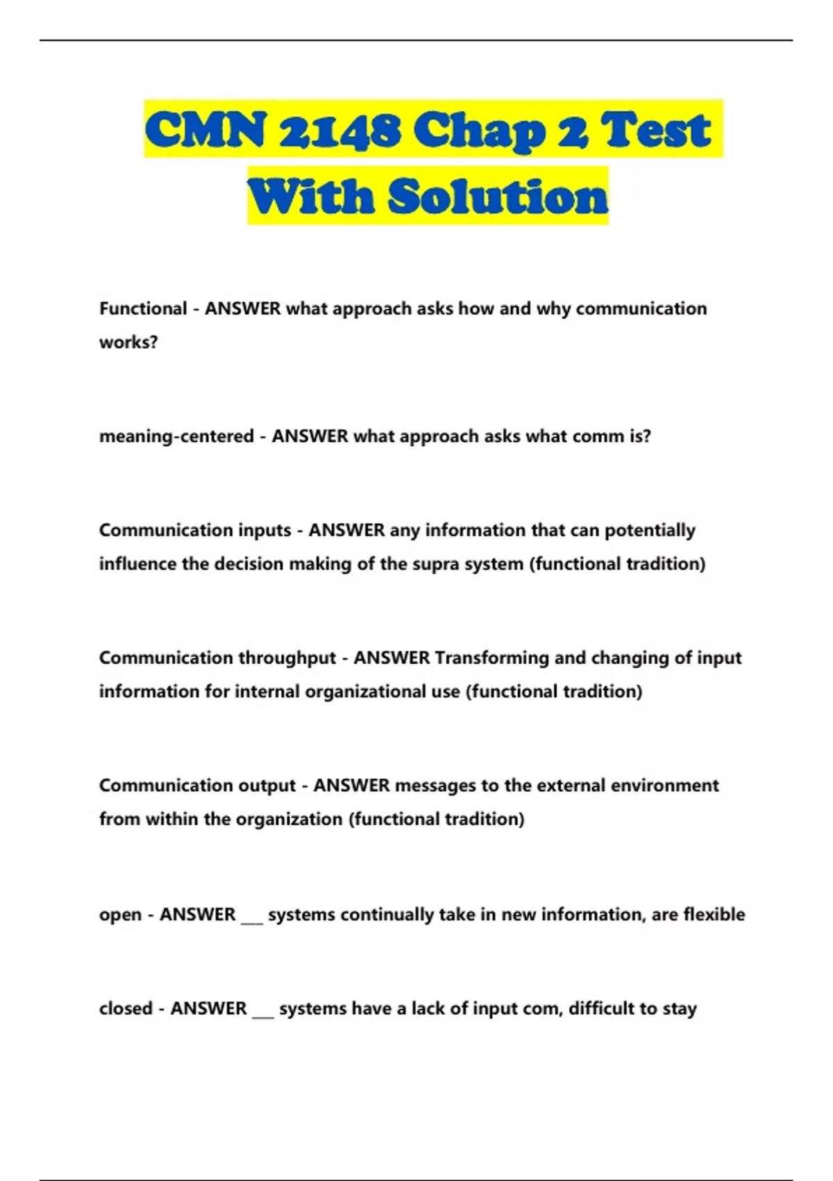 CMN 2148 Chap 2 Test With Solution...