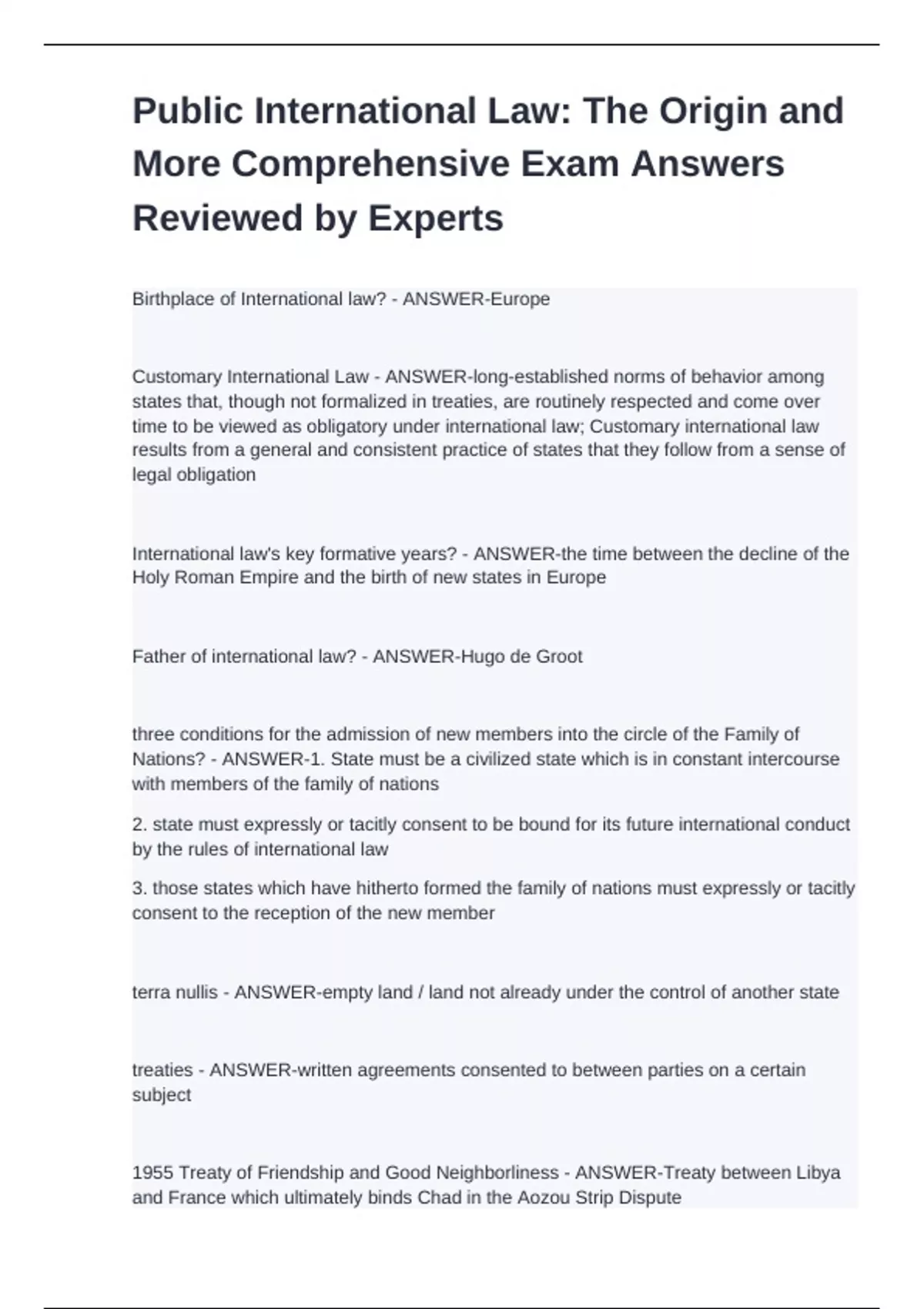 Public International Law: The Origin and More Comprehensive Exam Answers Reviewed by Experts