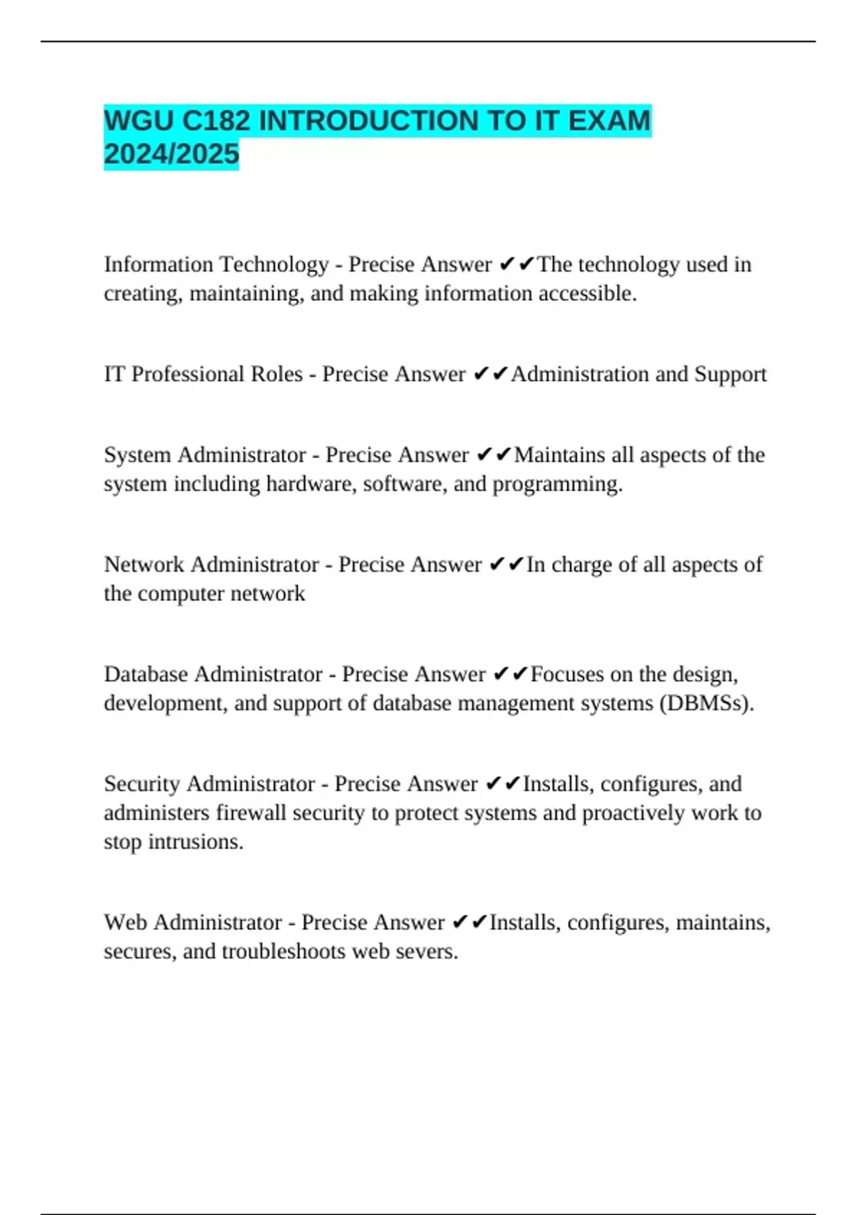 WGU C182 INTRODUCTION TO IT EXAM 2024/2025