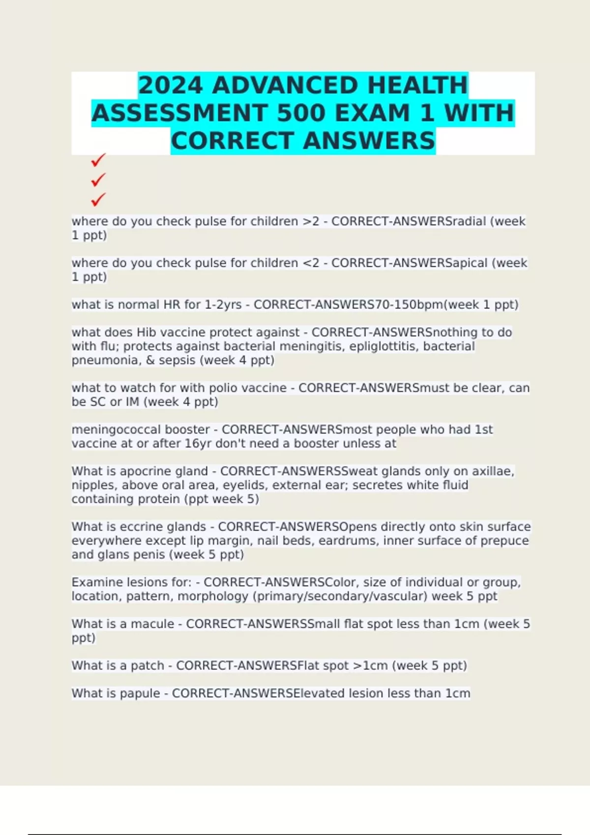 where do you check pulse for children <2 - CORRECT-ANSWERSapical (week