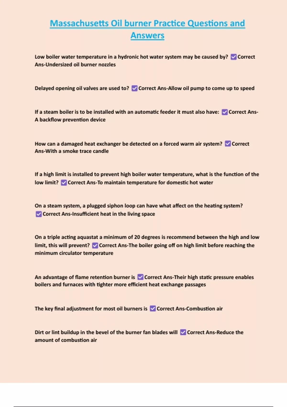 Oil burner test Questions and Answers