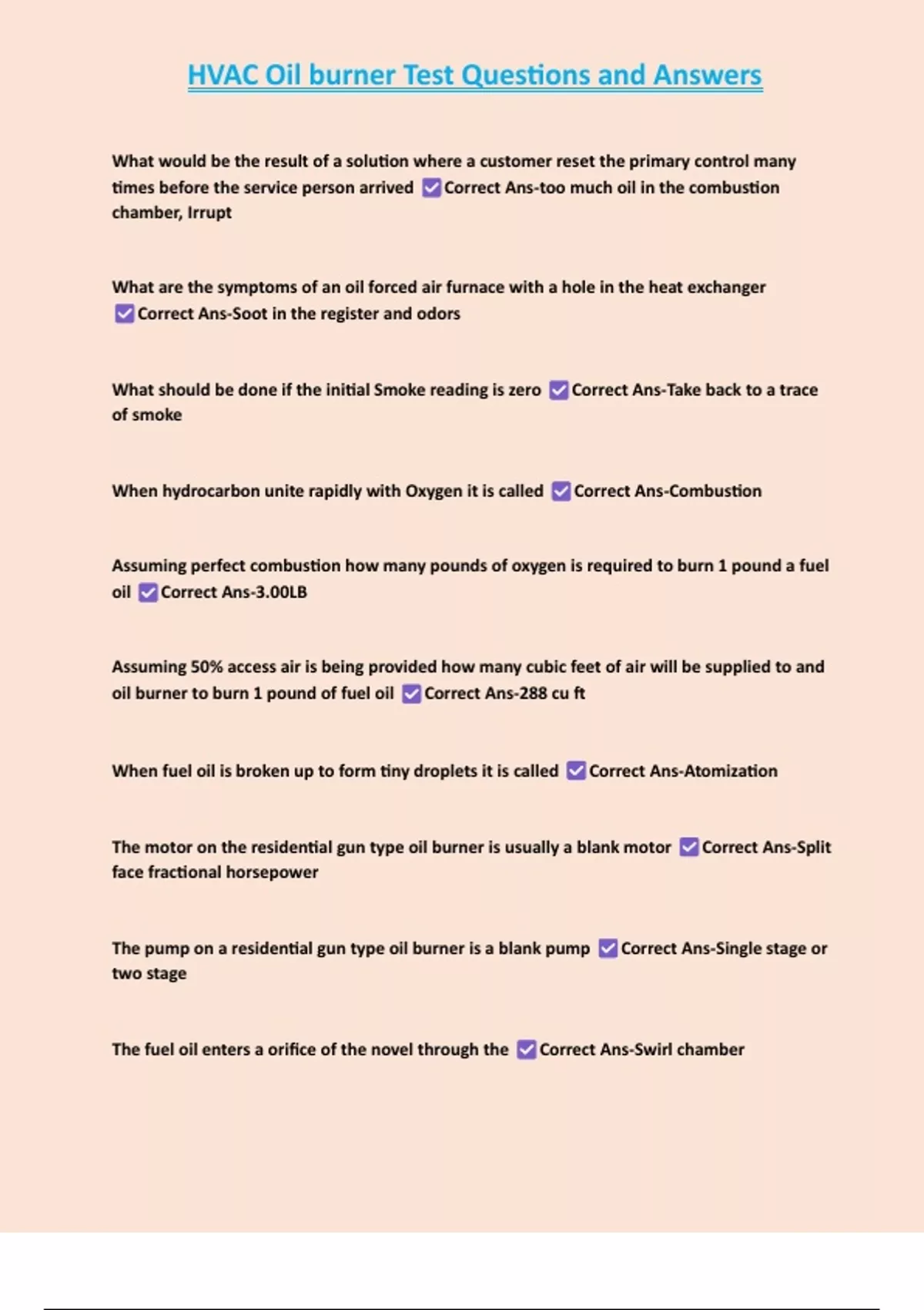 The heat exchanger in a forced air oil fired furnace Correct Ans-B- Transfers heat from the