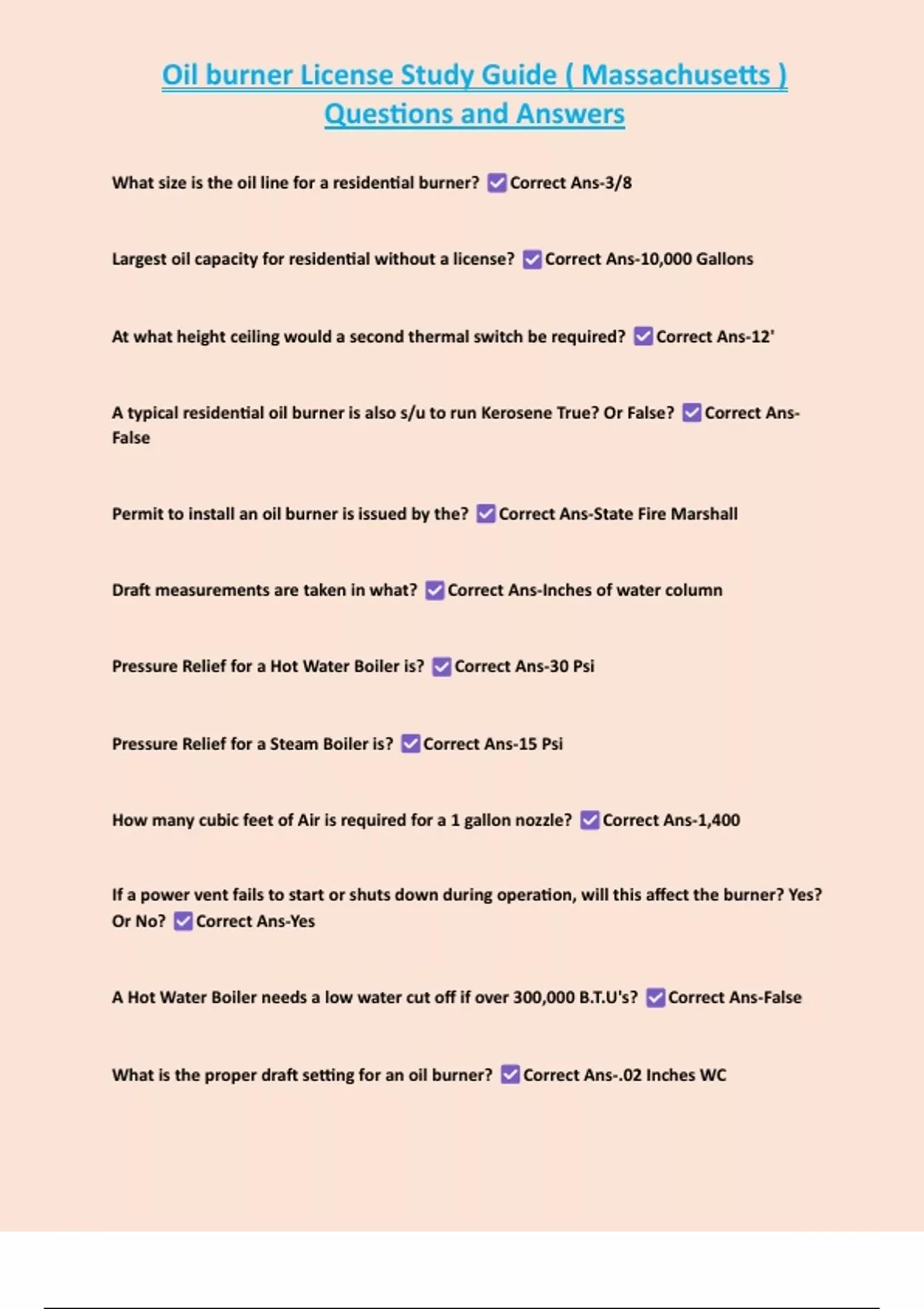 , Oil burner License Study Guide ( Massachusetts )