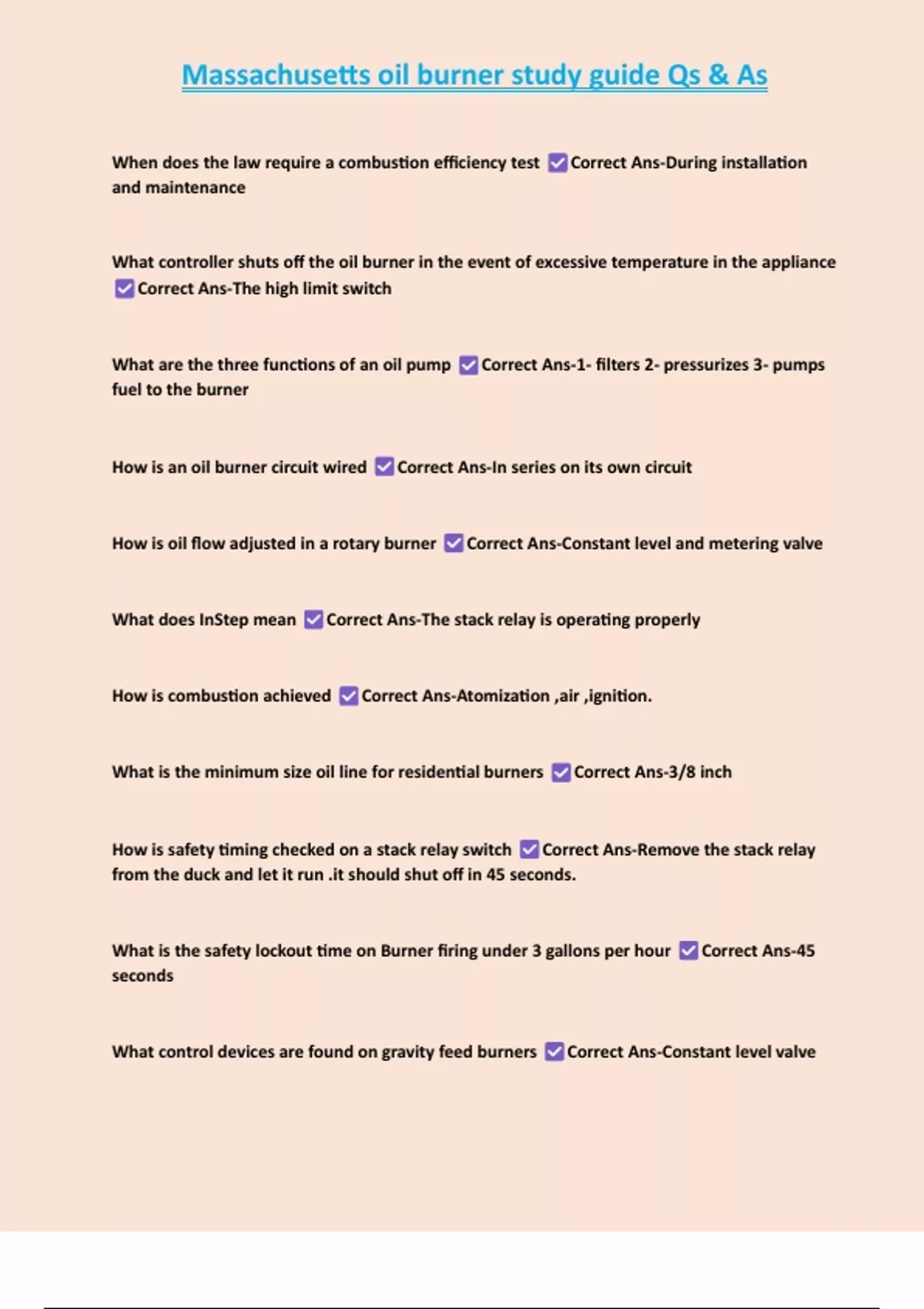 , Massachusetts oil burner study guide Qs & As