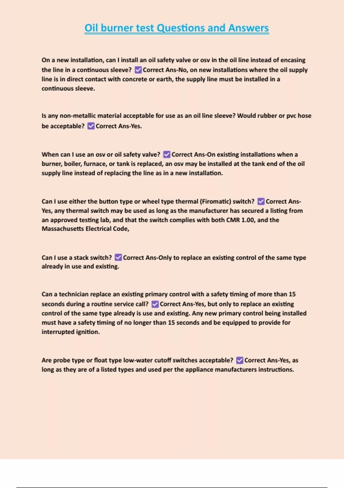 , Oil burner test Questions and Answers