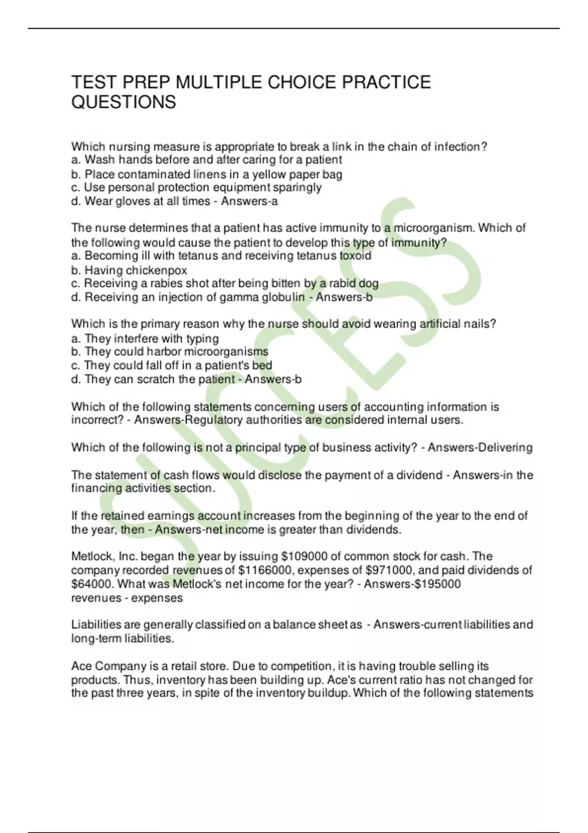 TEST PREP MULTIPLE CHOICE PRACTICE QUESTIONS