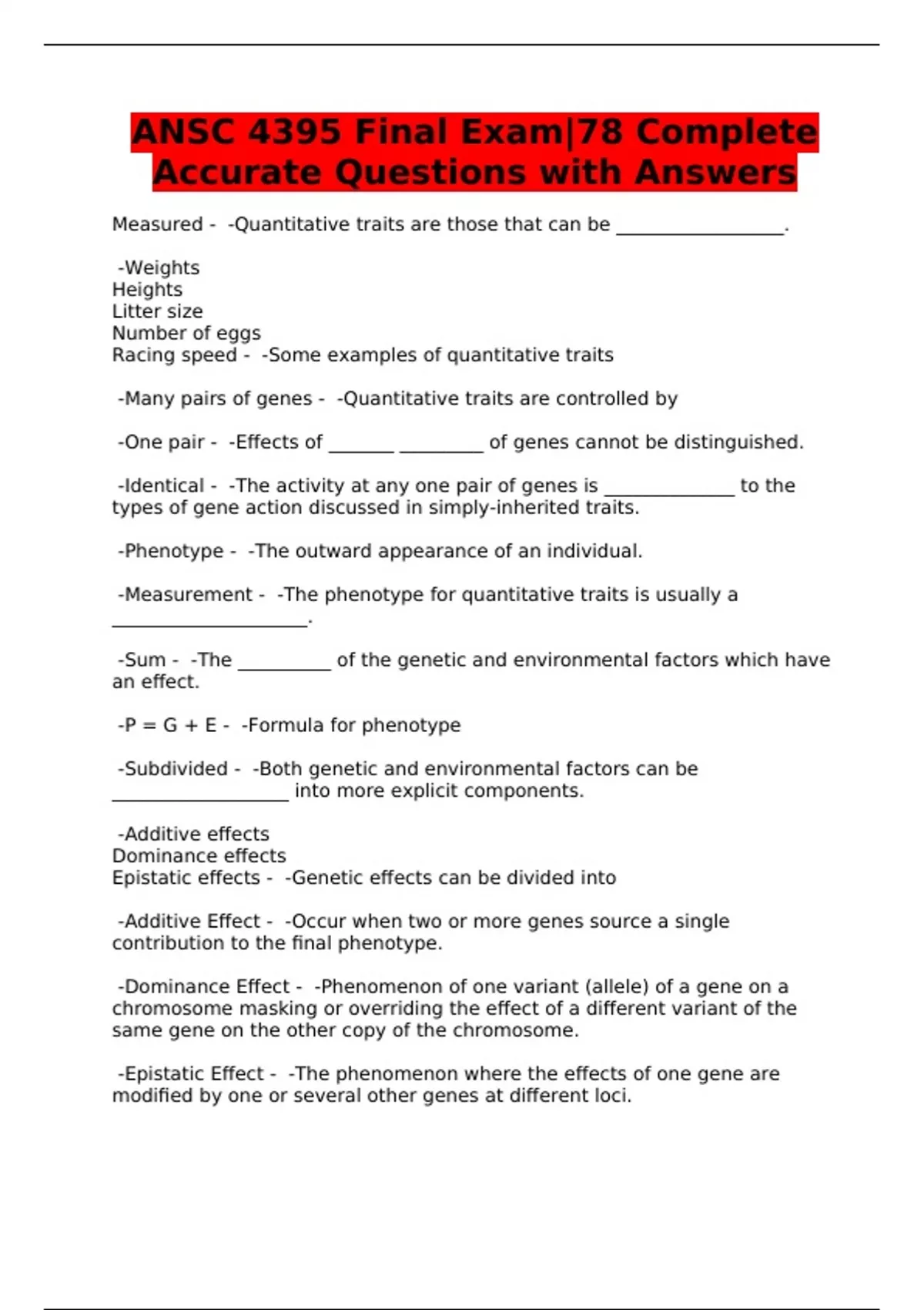 ANSC 4395 Final Exam|78 Complete Accurate Questions with Answers