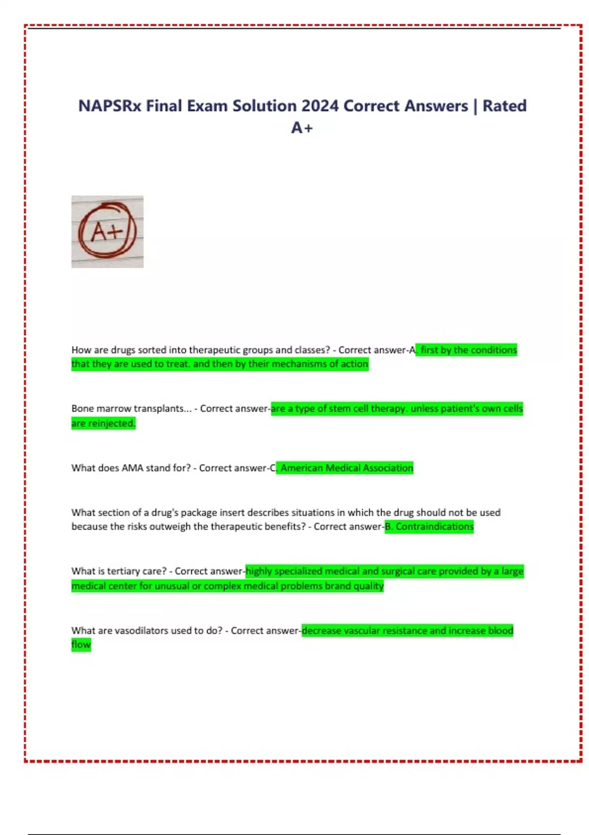 NAPSRx Final Exam Solution 2024 Correct Answers | Rated