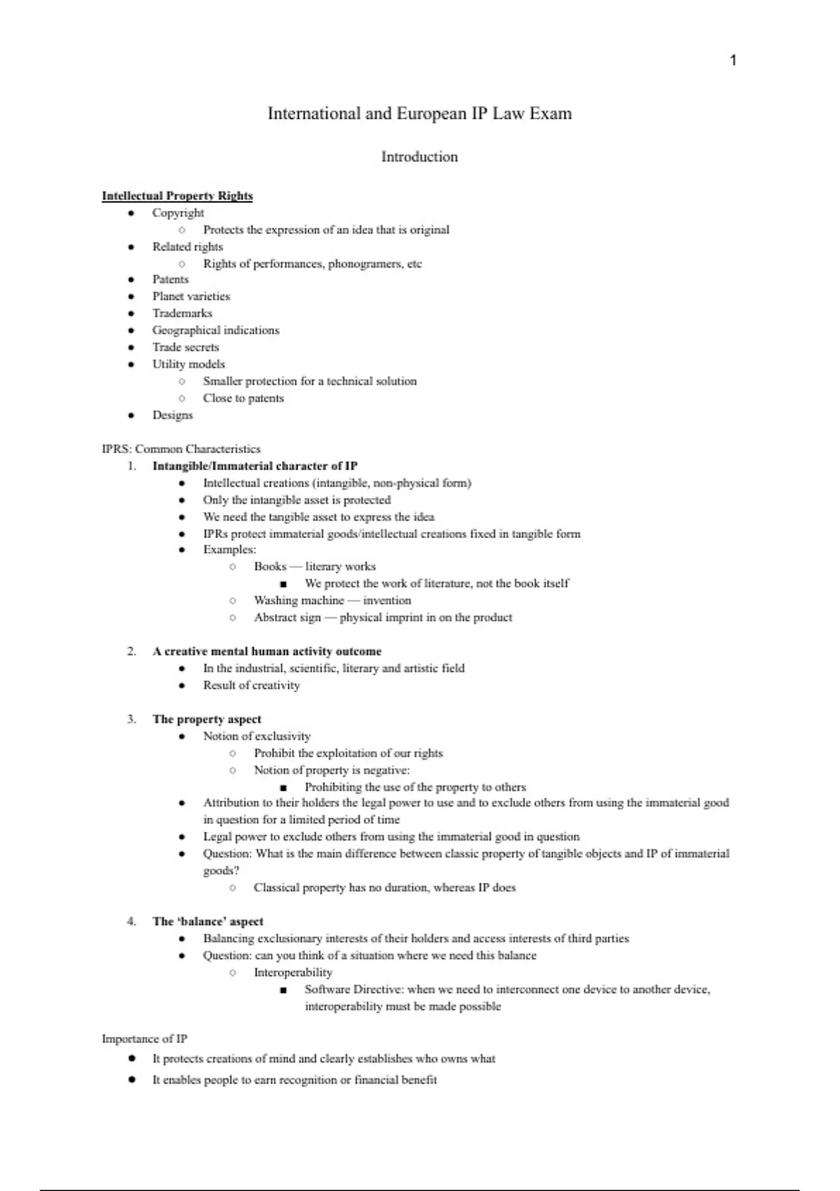 ● Question: What is the main difference between classic property of tangible objects and IP of immaterial