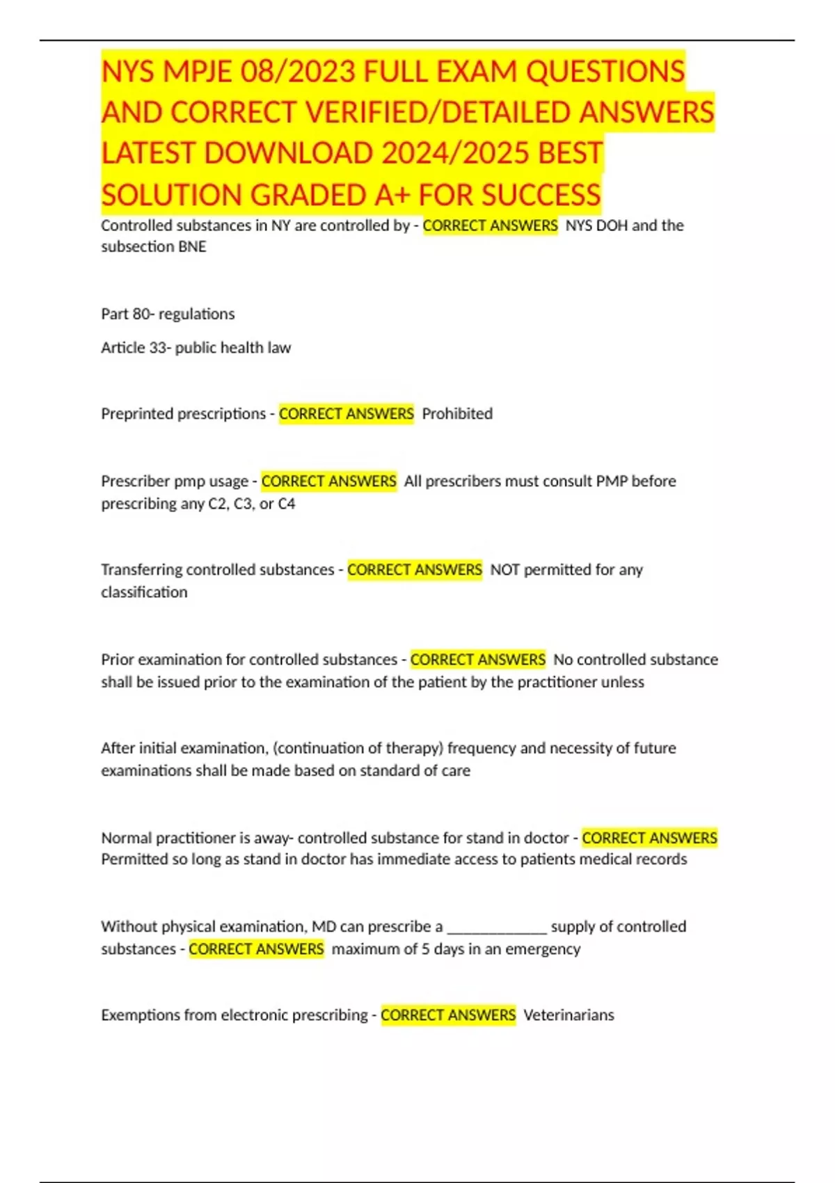 NYS MPJE 08/2023 FULL EXAM QUESTIONS AND CORRECT VERIFIED/DETAILED ANSWERS LATEST DOWNLOAD 2024/2025 BEST SOLUTION GRADED A+ FOR SUCCESS