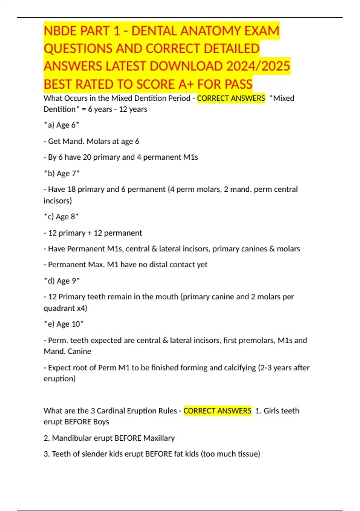 NBDE PART 1 - DENTAL ANATOMY EXAM QUESTIONS AND CORRECT DETAILED ANSWERS LATEST DOWNLOAD 2024/2025 BEST RATED TO SCORE A+ FOR PASS