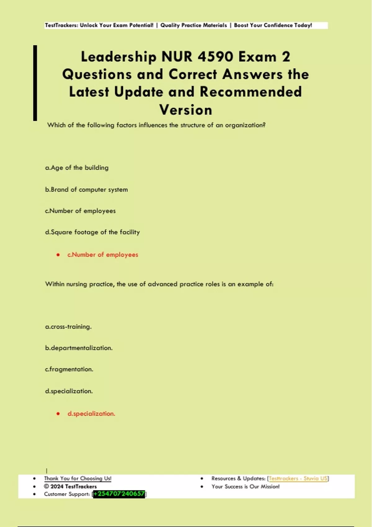 Leadership NUR 4590 Exam 2 Questions and Correct Answers the Latest Update and Recommended Version