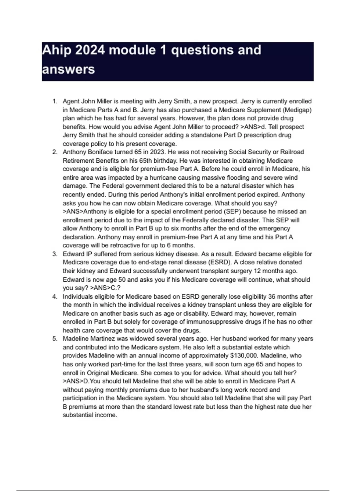 1. Agent John Miller is meeting with Jerry Smith, a new prospect. Jerry is currently enrolled