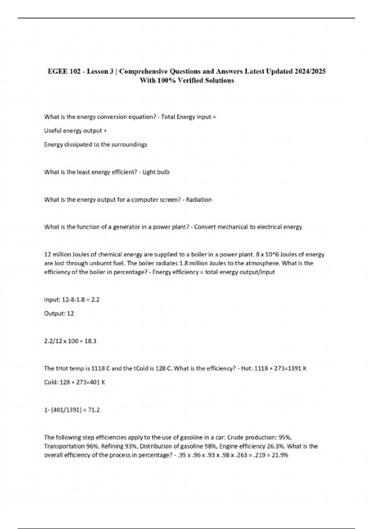 EGEE 102 - Lesson 3 | Comprehensive Questions and Answers Latest Updated 2024/2025 With 100% Verified Solutions