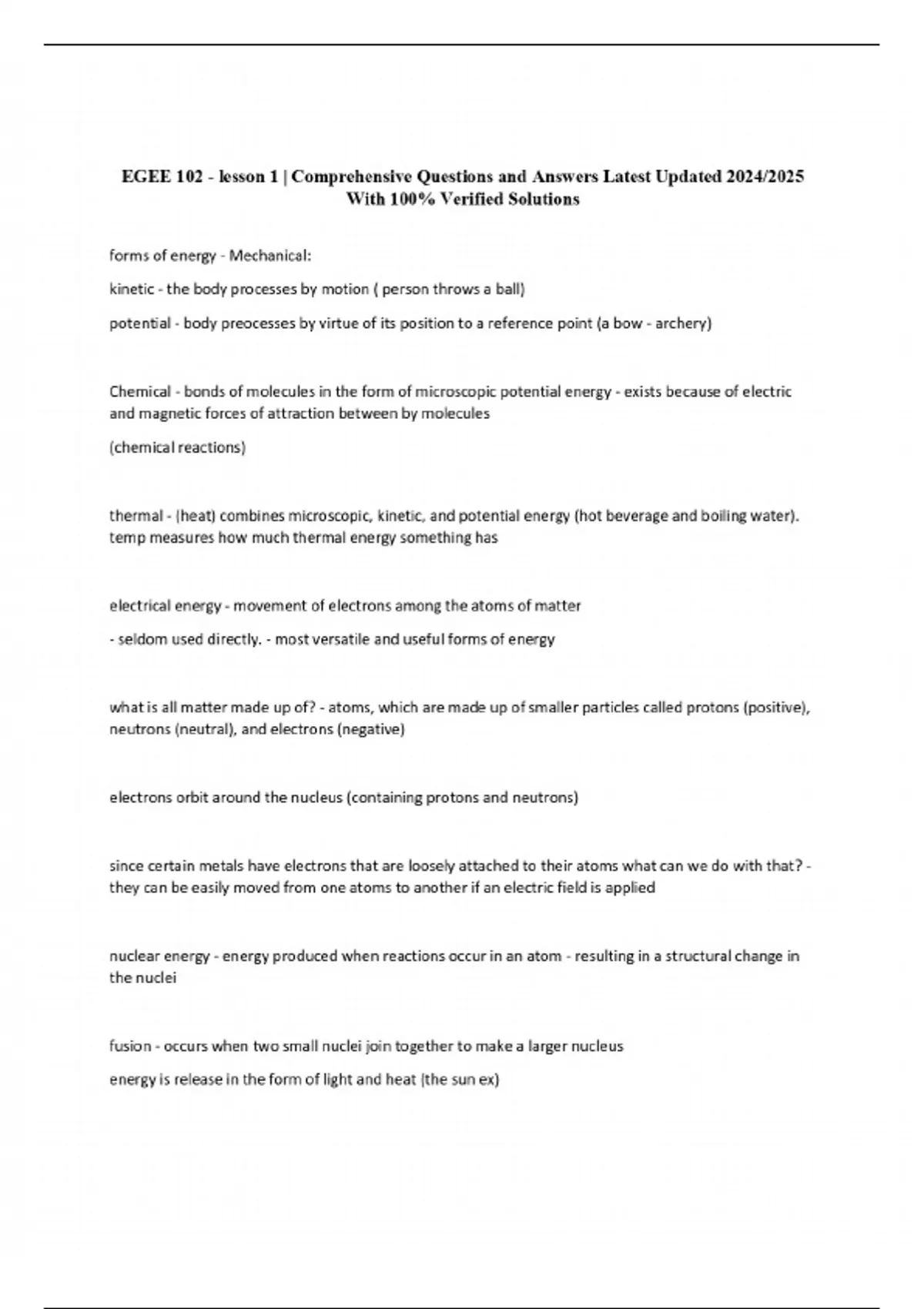 EGEE 102 - lesson 1 | Comprehensive Questions and Answers Latest Updated 2024/2025 With 100% Verified Solutions
