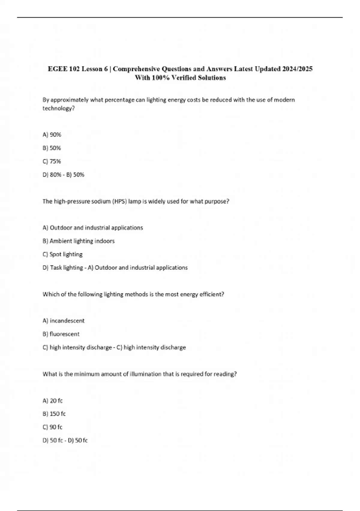 EGEE 102 Lesson 6 | Comprehensive Questions and Answers Latest Updated 2024/2025 With 100% Verified Solutions