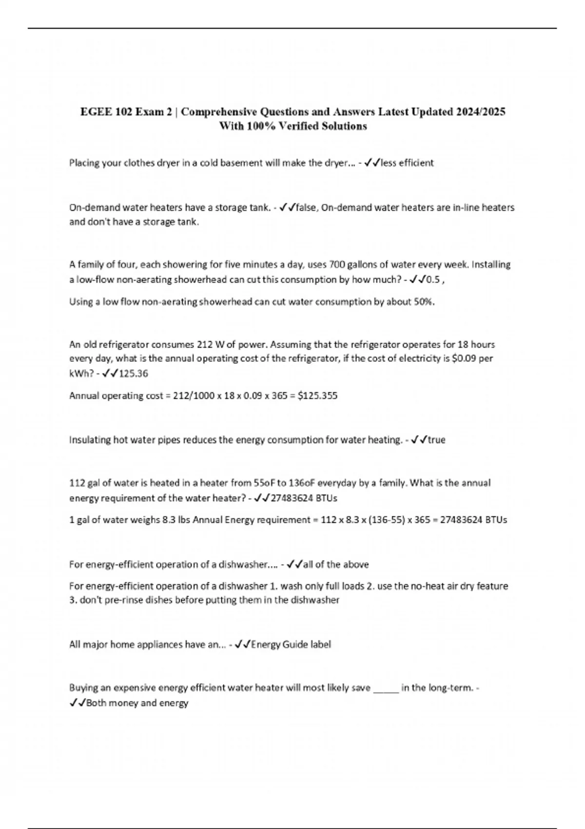 EGEE 102 Exam 2 | Comprehensive Questions and Answers Latest Updated 2024/2025 With 100% Verified Solutions