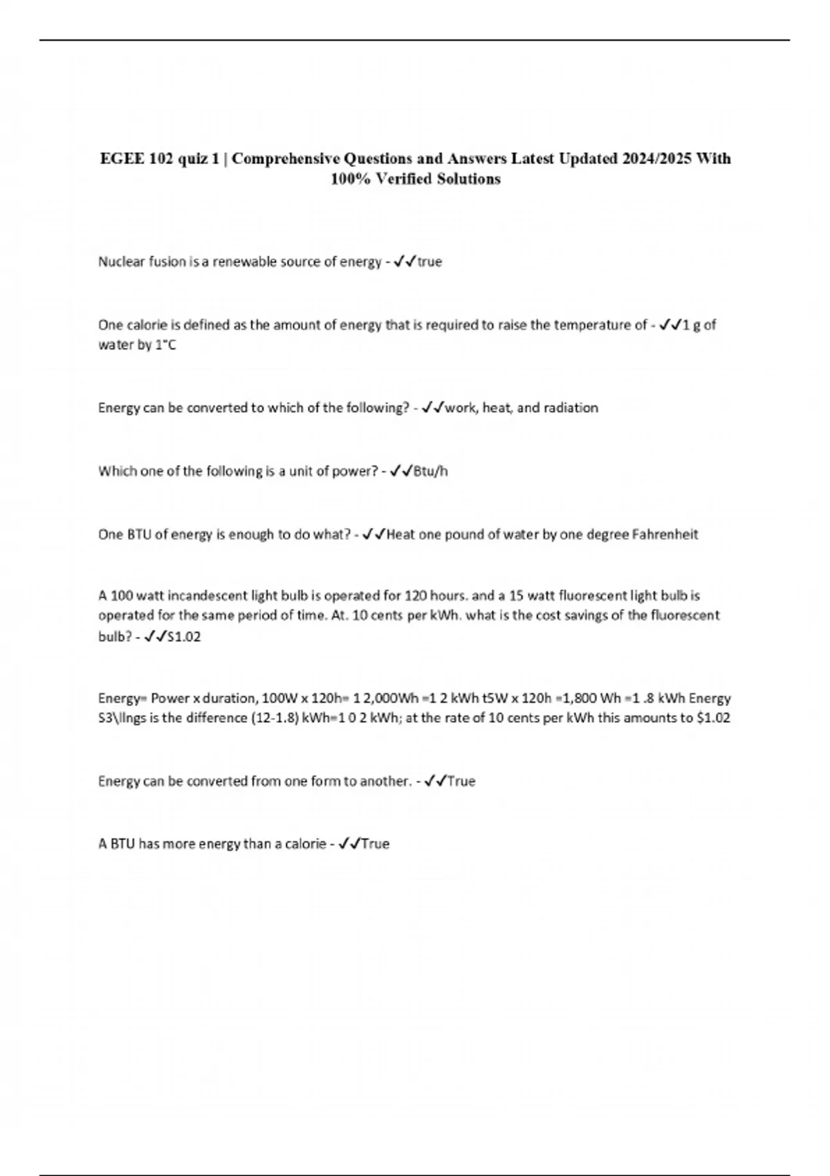 EGEE 102 quiz 1 | Comprehensive Questions and Answers Latest Updated 2024/2025 With 100% Verified Solutions