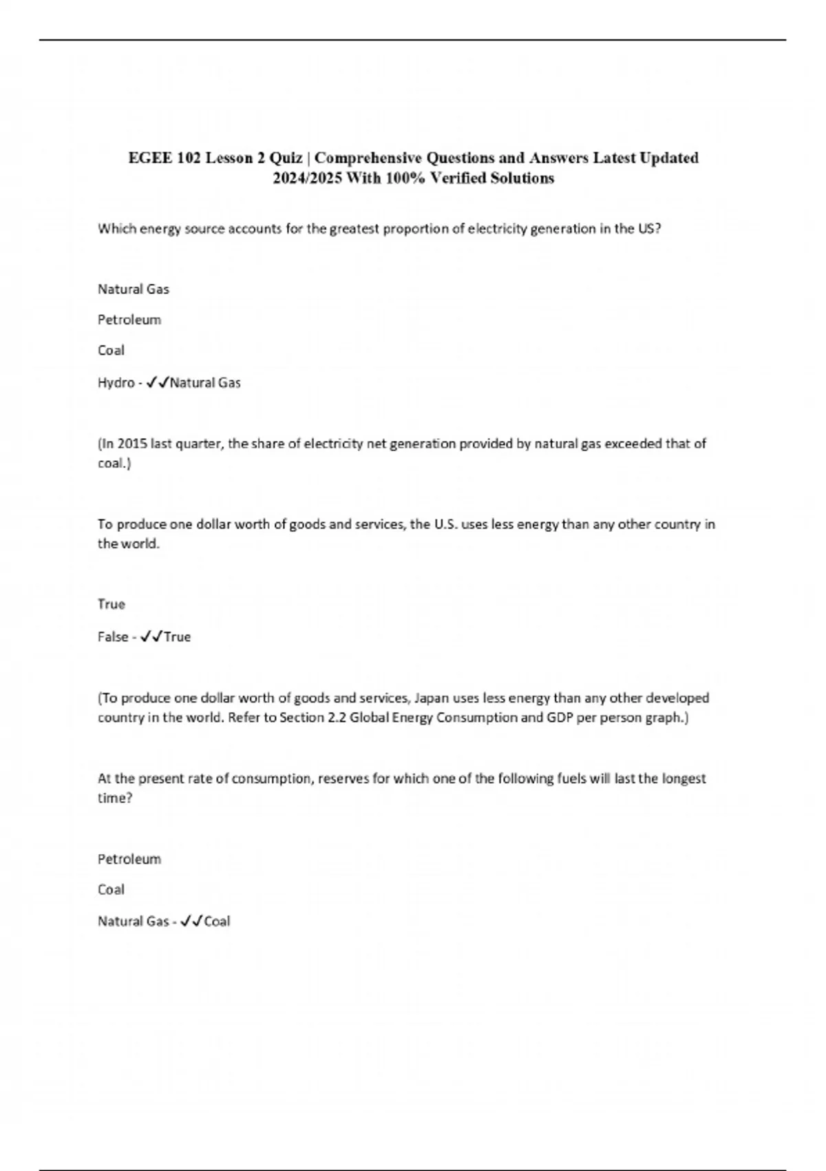 EGEE 102 Lesson 2 Quiz | Comprehensive Questions and Answers Latest Updated 2024/2025 With 100% Verified Solutions